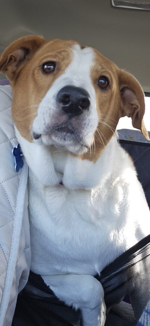 ABBEY MAE came to us when her owner had to go into assisted living. She is the sweetest, sweetest dog! Always happy to meet new people! Abbey is good with other dogs. She is coexisting with kitty cats right now but will chase them. Abbey is a bit of a chunk muffin and she’s on a weight loss diet prior to her spay on 4/14/26. Abbey has been vaccinated and will have pre-op blood panel run prior to surgery. Also 4DX and microchip. Currently 70 lbs and 8 years old. We are not sure her breed mix. She looks to be some sort of hound, maybe beagle and possibly a herding type dog like a Collie. Abbey will officially be available for adoption by the end of April but we are accepting applications now. Please fill out an application at www.companimals.org if you’re interested in adding this sweet girl to your family! Adoption $250.