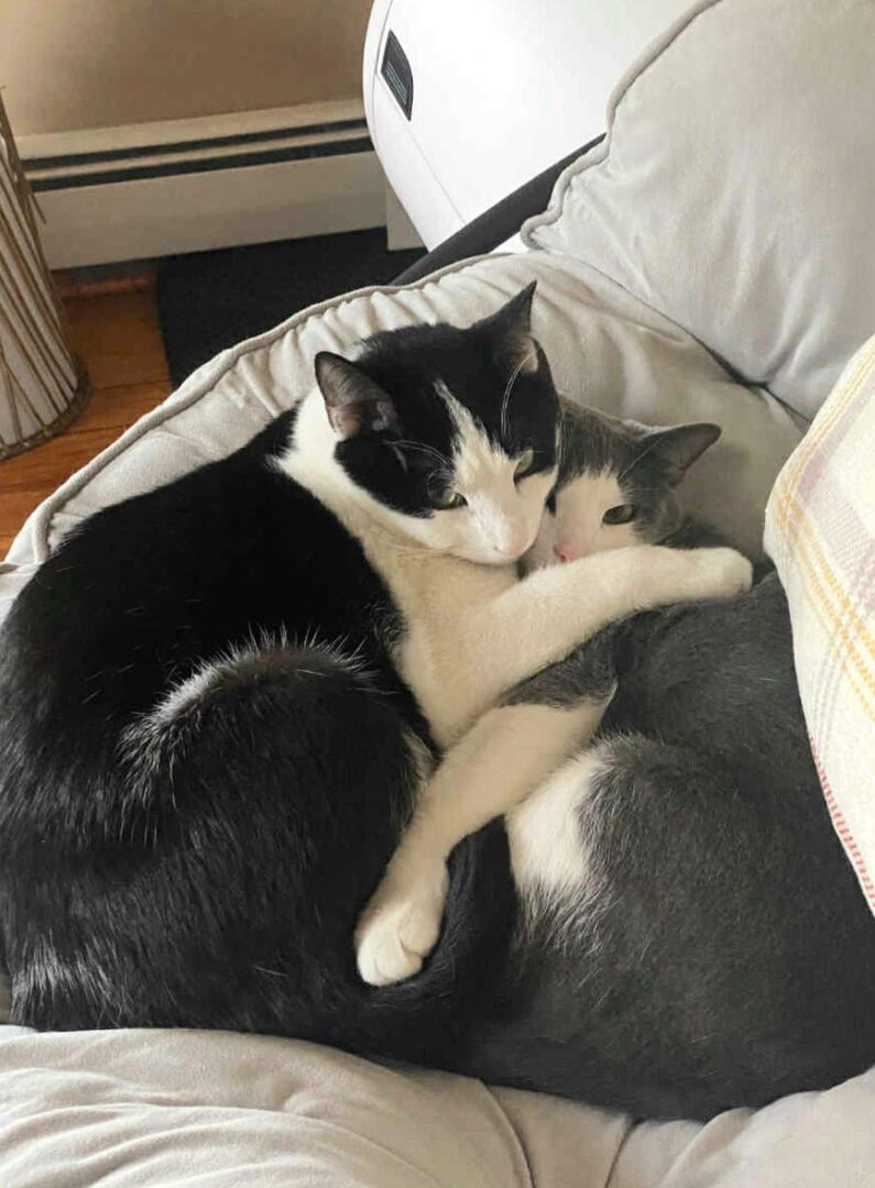 Adoption Donation $448 for the pr. Located in RI Age: 1 year old Hello! I'm Abu (gray/white) and that's my brother Oba (black/white). We're looking for a new home. We are neutered and up-to-date. We haven't lived with other animals or kids. We are sweet, bonded boys who like to cuddle. Our Mom is away a lot for work. She feels bad and wants more for us. If you are interested in adopting us, please fill out an application on the website www.fohari.org and email my foster parent for more information. Foster.Adopt.Repeat.2021@gmail.com Please verify the location and readiness of this cat with us. Because we save lives from various locations throughout the United States, some cats may not be in New England yet, nor ready for immediate adoption. Our adoption application can be found here: https://fohari.org/application/ Our Adoption Process: Go to our website and select the animal you are interested in. ALL animals are in foster homes as we do NOT have a shelter where you can visit. Some animals are in foster care in New England, and some are located in other states. If the initials following the animals name are a state, then that is the state where the animal is located. If initials are not a state, then those are the initials of the foster home outside of New England and you will not be able to meet the animal ahead of time. Complete our online application You will be contacted by phone or email by the foster parent or a member of our adoption team and will have the opportunity to find out more about the animal, and ask any questions that you have to ensure the animal is a good fit for your household. If the animal is local, you can meet the animal, but you would not be able to take the dog home until you are approved to adopt. From our end, we will check references and schedule a home visit. If you live in an apartment, or a condo, we will need to verify permission to own the animal from your landlord or condo board. Please let your vet’s office and references know we will be contacting them. If your references are positive, we will schedule a home visit by a volunteer. Please try to accommodate the home visit volunteer as most have busy schedules. Delays in the visit will result in a delay in the adoption. Once you are approved, you will receive an e-mail with your adoption contract attached. This e-mail will have details about pick up, the balance of the adoption fee that is owed, etc. Please email your signed & witnessed contract and pay your adoption fee in full, and for any animals located out of state, you will be contacted for details about transport to New England. Once you have paid your adoption fee in full and sent back your contract, you can make arrangement to pick up your animal from the foster home or from transport depending on where the animal is located. Please bring a harness, collar, ID tag and leash when you are picking up the dog unless otherwise instructed by the foster parent. Our extensive approval process is intended to ensure the best fit between our animals and adopters. Friends of Homeless Animals (FOHA) reserves the right to deny any adoption application with or without disclosure of cause. Your adoption fee helps to cover the cost of all age appropriate vetting and transportation. FOHARI.ORG makes no explicit or implicit guarantees in reference to the health, temperament and/or the breed of the animal. The animal is adopted ‘as is’, and the adopter assumes all responsibility for treatment of any and all existing conditions or any other conditions of physical or temperament changes that may occur. FOHARI.ORG will provide the animal with the basic vaccines, heart worm test and sterilization of dogs and cats before adoption if the age and current health of the animal permits. While FOHARI.ORG makes every effort to place only healthy animals, FOHARI.ORG cannot guarantee the health of any animal, and shall not be held responsible for any medical expenses that may be incurred. Rescuer will provide information received from the veterinarian exam, observations on the temperament of the animal and a best guess of the breed. Friends of Homeless Animals Inc. (FOHA) ASK ABOUT OUR TRAINING REBATE! Thanks for caring How to Help: If you would like to HELP any of our special rescued dogs by making a donation or to place a deposit for a dog, you can use this secure & safe site on Paypal – please click on symbol below: How to Contact us: By phone between the hours of 10 AM and 7PM at 401-234-4499 By Email at friendsoha@yahoo.com Enter the dogs name in the subject line. Thank you! FRIENDS of HOMELESS ANIMALS, INC. is a RHODE ISLAND NON PROFIT 501 (C)(3) RESCUE