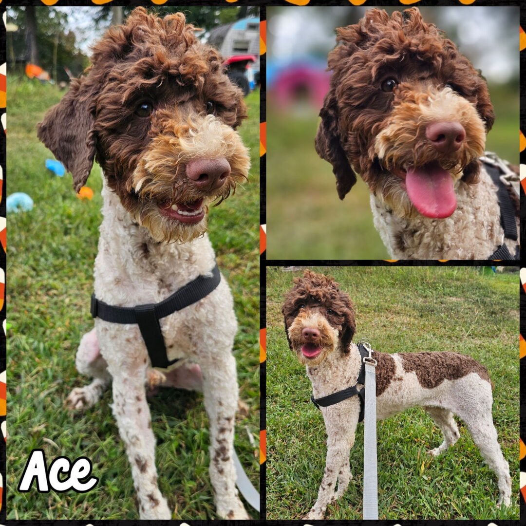 Meet Ace! Breed: moyen poodle. Age: est 1 year. Weight: approx 20lbs at this time. He could stand to gain a few pounds. Training: crate trained, we are working on house and leash training. He will need continued training and guidance as he hasn’t had many life experiences. Good with other dogs/cats? Yes, LOVES other dogs. In fact, we think he needs another dog to teach him the ropes. Good with adults/kids? Yes, although he is shy/submissive at first. He will need time to adjust. Personality: shy but curious. Playful with other dogs. He is learning how to play with toys! Reason for rescue: breeder release, retiring. Ace spent the first year of his life with little socialization. He has come so far, but will need a patient and understanding owner to help him become the wonderful companion we know he can be! He wants attention, but he is learning to accept it. He loves other dogs and we feel he needs another dog in his new home to show him how to be a companion! A fenced yard is best for him as he learns how to walk on a leash. He is neutered, microchipped, heartworm negative, and current on vaccinations and preventatives. If interested in adding this sweet baby to your family, please message for an adoption application! Adoption fee: $350.