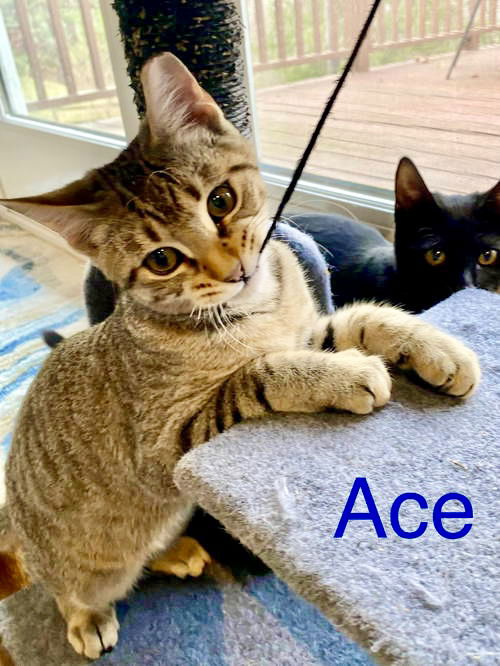 Say hello to Ace, the tabby kitten who never met a challenge he didn’t want to conquer. He’s the wildcard of the litter, always keeping you guessing and always making you smile. He’s spunky, fun and endlessly entertaining. One minute he’s racing across the room; the next he’s perched proudly on the highest part of the cat tower, surveying his kingdom. He may be adventurous, but he’s also unbelievably sweet—once he knows you he will purr, cuddle and win your heart. This little guy is ready for a home that appreciates both his playful charms and his gentle snuggles. Ace is 5 months old as of 11/2025 and is cat and dog friendly with a gradual introduction. He is litter box trained, neutered and up to date on vaccinations. Ace’s foster parents have loved having him and will be sad to see him go but they know he deserves a forever family of his own. Ace will need to go to a home with another friendly cat or kitten. If you are looking to adopt two please consider his brother Murray. Ace and Murray are now playing in our Willow Grove PetSmart adoption center. Please stop in for a visit! Please submit a no-obligation application for a meet and greet or to adopt: https://forgottencats.org/adoption-application/. Thank you! (Donna D.).