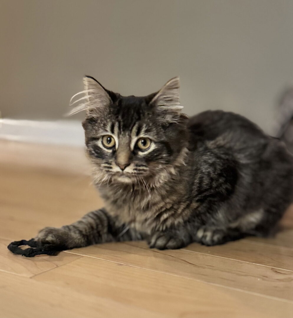 See Adeline’s HomepageYou can fill out an adoption application online on our official website.Adeline's hair tie shows how she will carry around little objects as if she’s hunting. Adeline is the sweetest, craziest, funny kitten. Her foster Mom taught her how to jump on her shoulder by patting. She does great around children, other cats and the friendly dogs. Estimated DOB: 11/26/2024 Adoption fee: $160 (6% KY sales tax included) We would love to hear from you! To inquire about this cat, please contact us via this site, visit our website sc4paws.org to see a full bio, or visit sc4paws.rescuegroups.org/forms/ to fill out our adoption application. Important: Our cats reside in foster homes. Please fill out our adoption application if you would like to meet one of these special kitties! SCHS Veterinary Care and Services for Cats (6 months of age and older): Prior to being placed for adoption, all cats, at a minimum, receive a veterinary exam, are neutered/spayed, tested for FeLV, microchipped, current on booster(s) and rabies vaccinations, de-wormed, flea treated, and checked/treated for ear mites. SCHS Veterinary Care and Services for Kittens (under 6 months of age): Prior to being placed for adoption, all kittens, at a minimum, receive a veterinary exam, are neutered/spayed, tested for FeLV, microchipped, current on booster vaccinations, de-wormed, flea treated, and checked/treated for ear mites. HELP TO SPONSOR THIS KITTY BY MAKING A DONATION! SCHS is a 501(c)-3 nonprofit organization that is volunteer-run.