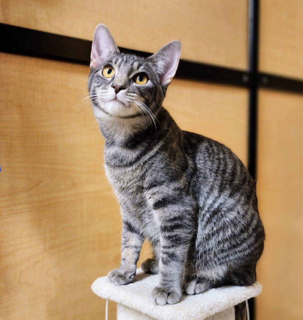 Alexandre is a handsome DSH gray tabby male born approximately March 3, 2025. Say Hello to Alexandre: Your Playful Pal! Just like his mom, Bijou, Alexandre can be a little shy when you first meet him. But don't let that fool you! Once he feels comfortable, this young lad has a playful side that's just waiting to shine. His absolute favorite things are chasing after wand toys and batting around tiny, furry mice. If you love interactive play, Alexandre will be your purr-fect partner in fun! This sweet boy is ready to leave his fostering days behind and find a loving forever home where he can explore, pounce, and enjoy plenty of playtime. While he might need a little time to warm up in his new environment, patience and gentle interaction will quickly reveal his affectionate nature. His striking gray tabby markings are sure to win your heart, and his playful antics will keep you entertained. If you're looking for a charming and engaging feline friend who will bring joy and playfulness into your life, Alexandre could be the one! Alexandre is microchipped and currently in a foster home, eager to meet his forever family. His adoption fee is $105. Want to see more of this delightful boy in action? Follow us on Instagram or Threads at @bernard_foster_cats for extra photos and videos!