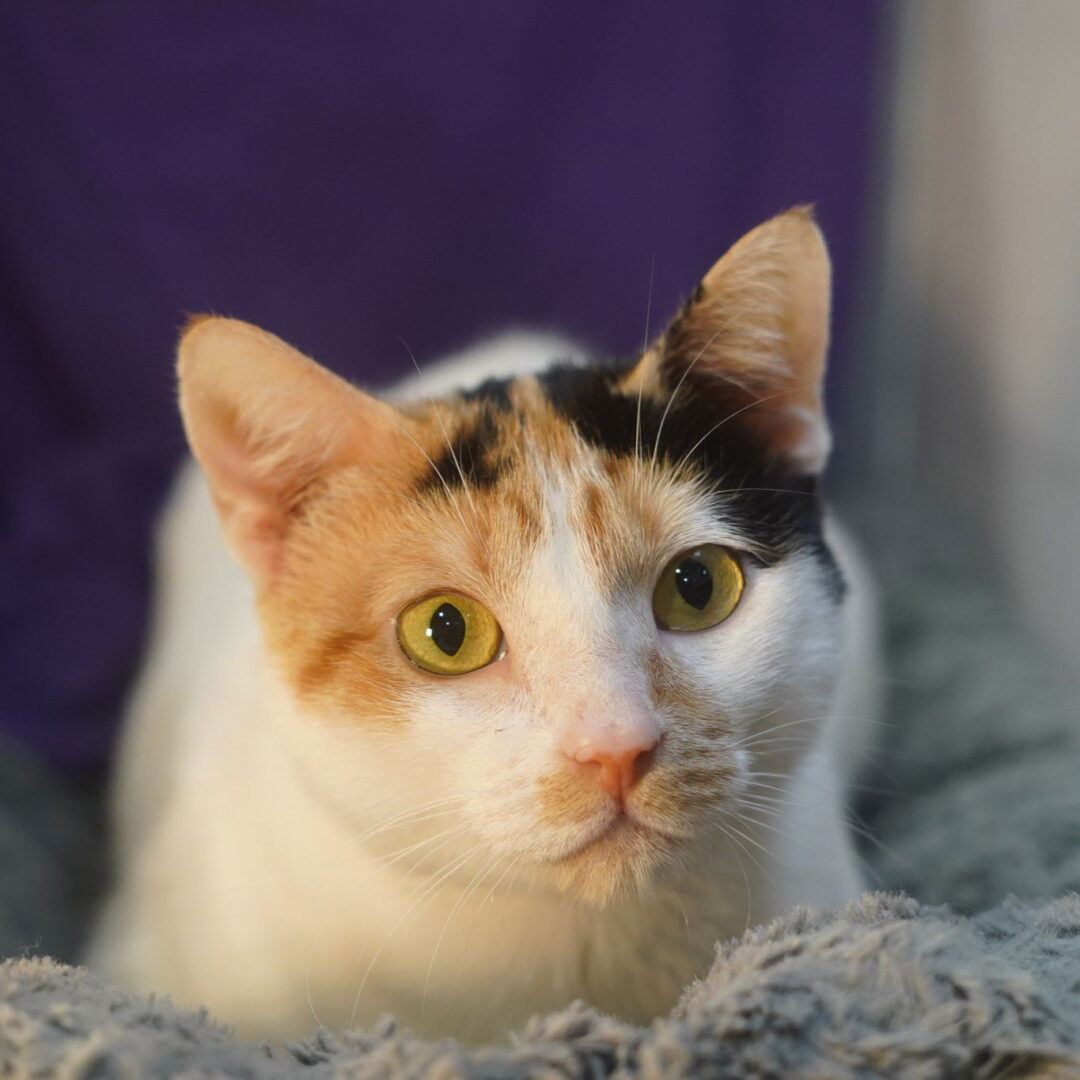 Alice is a lovely DSH Calico female born approximately 4/14/2024. Alice and her two kittens, Sofi and Tucker II, were rescued by a good Samaritan who reached out to NBCR for help finding this sweet little family loving forever homes. Alice is a simple cat: she loves pets and cuddling, and she loves having food in her bowl. She'll try to save some of her food for later, just to be sure she has some. She'll let you know when she needs cuddle time, and she's great at the vet. Alice is microchipped and currently in a loving foster home. Her adoption fee is $105.