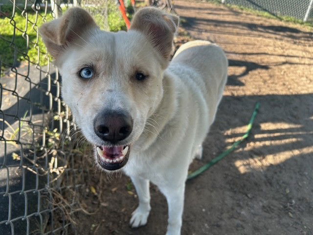 Amanita is a quiet and striking husky mix who came to the shelter on 10/10. She’s easy to walk but can be a bit shy with handling and new environments. This unique-looking girl would thrive in a calm, patient home where she can build confidence and blossom into her full, wonderful self.