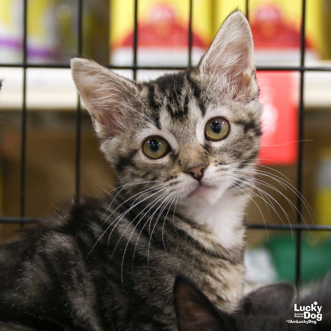 Please contact Lauren McCarty (laurenmc@luckydoganimalrescue.org) for more information about this pet.Beautiful kitten Amelia needs a forever home!AMELIA NEEDS A FOREVER HOME! Name: Amelia Best Guess for Breed: Domestic Short Hair Age: 11 weeks as of 6/3 Estimated DOB: 3/18/25 SEX: Female Approximate Weight: 2.2 lbs a/o 5/28 Coloring: Brown Tabby Type of Hair: Short Gets Along With: Because of her young age, Amelia will likely get along with other cats, dogs and kids with an acclimation period. We’re happy to help with tips and tricks! Litter: Agatha, Alethia, Amelia & Angus Currently Living at: Foster in the DC area I am Looking For: My loving forever family! Hi! I’m Amelia, and I am a cute little kitten! I won’t ask for much- just some love, cuddles and lots of toys so I can run and play and be my kitten self. Two kittens are better than one – consider adopting one of my super cute siblings, too!What the Shelter Says About Me: Most everyone knows the most famous Amelia in the world was a renowned pilot and flew the skies with ease. Well don’t count me out, as taking short flights is one of my talents too. You just play climb the mountain on foster mom and launch yourself to the nearest landing pad and voila! Safe and sound and let’s do it again is little Amelia’s mantra! This little girl is practically fearless and will take on the most daunting challenges all the while being a loving, purring puddle of sweetness. She has unlimited energy but as all good kitties do, collapses into a deep and restful sleep just waiting for the next time to take off into another adventure. So the bottom line here is Amelia will be waiting for someone to take a chance on her and launch themselves into her life forever with love and cuddles and happiness. This litter was saved and raised by their foster family since the kittens were 7 to 9 ounces in size. So they do love people! What my Foster Says About Me: Coming soon! Kitten Vetting Requirements: Your kitten may not be fully vaccinated upon adoption. You will be responsible for providing whatever remaining vaccines are needed to complete the kitten vaccine series. Due to this kitten’s young age, she/he has not yet been spayed or neutered. As part of the adoption contract, it will be your responsibility, as the adopter, to ensure that this is done no later than 9/18/25. There are NO EXCEPTIONS and NO EXTENSIONS to this date. A non-refundable spay/neuter deposit will be collected if you would like Lucky Dog to pay for this animal to be spayed/neutered at one of our low-cost partner vets. TO ADOPT: The adoption fee for adult cats is $200 ($350 for two cats adopted together). The adoption fee for a kitten (under 7 months old) is $220 ($380 for two kittens adopted together).If you are interested in adopting, please complete the Adoption Questionnaire online at bit.ly/adoptaluckycat. Lucky Dog Animal Rescue does our best to provide accurate information about the cats we have for adoption. That said, we cannot make any guarantees about age, breed or temperament. Thank you for contacting Lucky Dog Animal Rescue and helping to save a life! Please visit us online at www.luckydoganimalrescue.org . BE A FOSTER!!! Fosters make it possible for Lucky Dog Animal Rescue to save and care for homeless and abandoned dogs! To learn about fostering, please contact fostering@luckydoganimalrescue.org BE A SPONSOR!!!! Sponsors help Lucky Dog support the many dogs we save. To learn more about sponsorship, please contact info@luckydoganimalrescue.org !