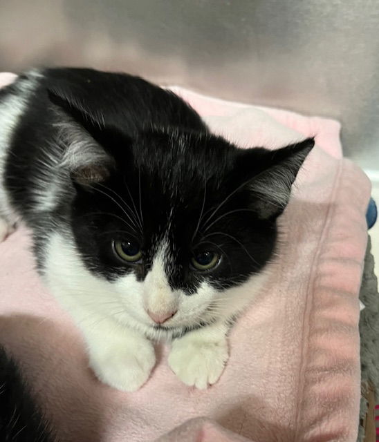 Amos is a male tuxedo kitty about 2 months of age. He has mostly a black coat on his back side and most of his head. White fur covers his legs, neck and the lower half of his face and other spots throughout. Amos is a sweet, adorable, friendly kitten that likes to be held and snuggled. He and his sibs were born to a stray cat, but rescued, tamed and now looking for their own forever indoor homes. The litter includes Joel, Amos, Micah, Luna and Moon. They are all playful with lots of kitten energy and will benefit from a variety of toys and interactive play. Kitten food is required until one year of age for healthy development. Amarillo SPCA, 11901 S. Coulter. 806-622-0555.