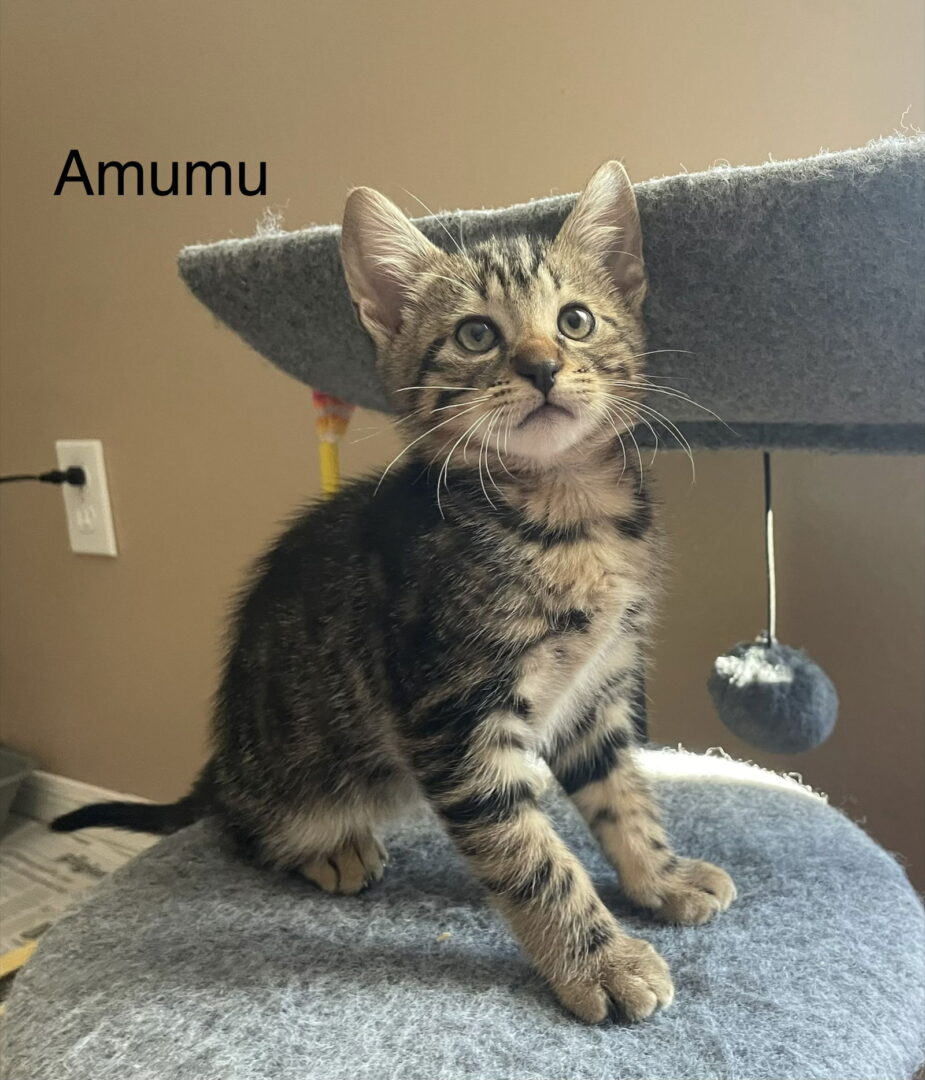 See Amumu’s HomepageGo to our official websitePlease contact Kim (Kmontes1969@gmail.com) for more information about this pet.Amumu came to foster after he and his 4 siblings were found with their mother. All six have been in my kitten room for over a month. He enjoys playing and sitting in your lap. He purrs like a car engine. He is litterbox trained, eats wet and dry food and greets me when I enter the room. He has been neutered and is ready to go home today. He has all of his kitten vaccines, be microchipped, dewormed and receive flea medication. The adoption fee is $50.00 and kittens are always BOGO. If you would like to meet him, email her foster mom at: kmontes1969@gmail.com