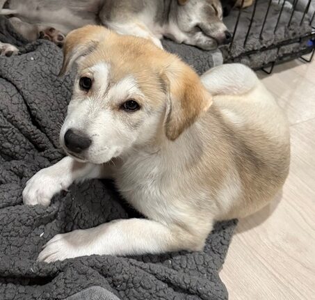 Ares Don’t let her size deceive you—Ares is a gentle giant at heart! This confident, cream-and-white beauty is the self-appointed leader of her litter, always the first to decide when it’s time to eat, play, or nap. She loves pouncing on her siblings during playtime, snuggling up for cozy naps, and enjoying every single mealtime with enthusiasm.Ares and her mom, Athena, were rescued from the Moreno Valley Shelter when the puppies were just a few weeks old. Thanks to the safety and care of their foster home, they’ve been able to grow, thrive, and show their sweet, playful personalities.While her exact breed is a bit of a mystery, we expect Ares to grow into a medium-sized dog with a soft, fluffy coat that’s just as cuddly as her personality.Her adoption fee includes her spay at our vet when she’s old enough, up-to-date vaccines, and a microchip. Apply to adopt Ares at www.kpprescue.com and give this confident, loving girl the forever home she deserves!