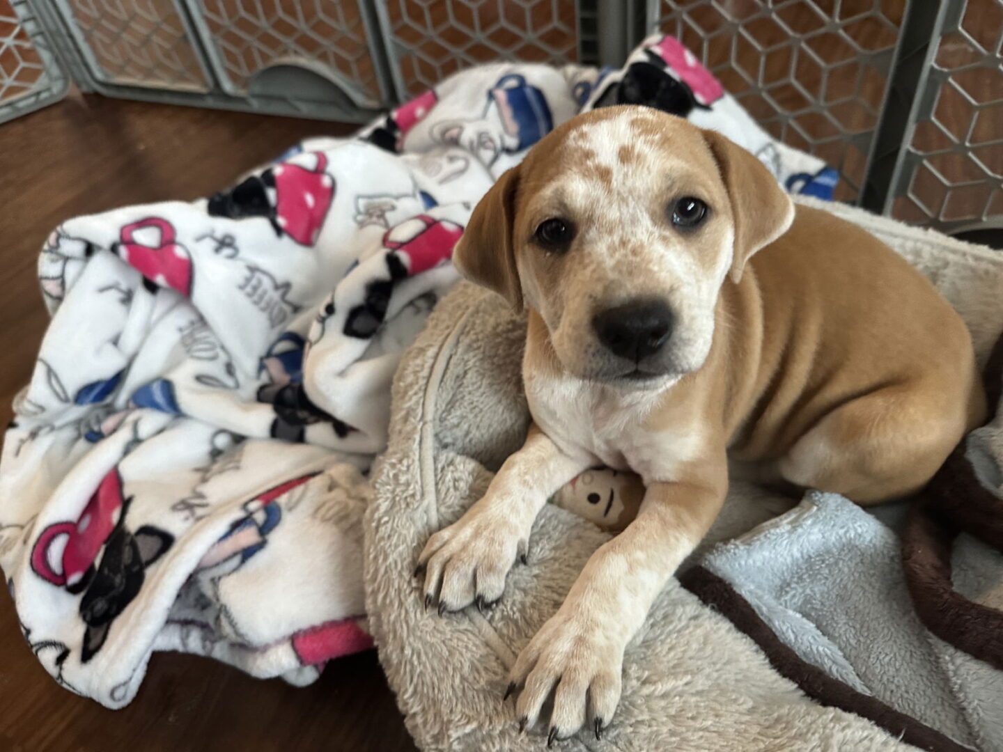 See Anne’s HomepageGo to our official websiteMeet Anne! Born in rescue on 10/19, this female Coonhound mix is a playful, smart, and affectionate puppy who’s ready to find a forever family. With a curious mind and a quick-learning personality, Anne loves exploring, playing, and soaking up new experiences. She weighs around 12 lbs now and will likely be 55+ lbs full grown Anne does wonderfully with kids and has a friendly nature that makes her a great family companion. Being highly intelligent and eager to learn, Grace is already showing great potential with training and will thrive with positive reinforcement and consistency. If you’re looking for a fun-loving puppy with brains, heart, and lots of tail wags, Grace might be the perfect match for you! The adoption fee of $450 will include spay/neuter, microchip, age appropriate/required vaccinations, treatment for heartworm and any other necessary medical treatment to assure a healthy new pup for your family. IMPORTANT DISCLAIMER: Although we do our best to describe breed, since our pups all come from shelters we can not and will not make any guarantee on breed or size. We can tell you that they are 100% RESCUED! And that is the BEST breed! *please note that we are a foster home based rescue and we do home visits as part of the adoption process – we are unable to adopt to families who live outside of the Chicago and surrounding suburbs. Thank you for your understanding.