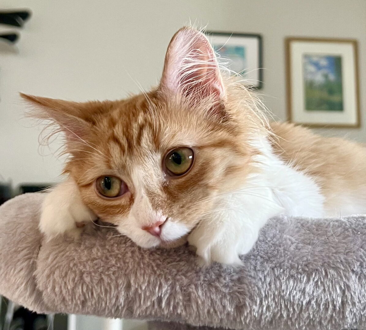 See Apricot’s HomepageGo to our official websiteADOPTED —Apricot is a sweet and spunky 5-month-old girl full of love. She’s a social butterfly who adores meeting new people, rubbing up against your legs, and demanding all the pets and attention you can spare. Her cute head tilt, the result of a poly removal surgery as a kitten, does not slow her down at all, it just adds to her charm! (She should not need further treatment and is fully healed). Whether she’s zooming around the room in a burst of kitten energy or curled up in bed purring by your side, Apricot brings joy wherever she goes. Interested in this Little Buddy? For the fastest response, please call our Adoption Coordinator at 703-431-5931 and leave a voicemail with your name, number and name(s) of the Little Buddy(s) you are interested in learning more about. Our Adoption Coordinator will return your call in 24-48 hours. Calls will be returned in the order they are received. Please only call once and remember to leave a detailed voicemail. Our adoption fee is $190 for a cat or kitten. This includes spay/neuter, microchipping, combo testing, age-appropriate vaccinations, deworming, flea treatment and any necessary medical care prior to adoption.