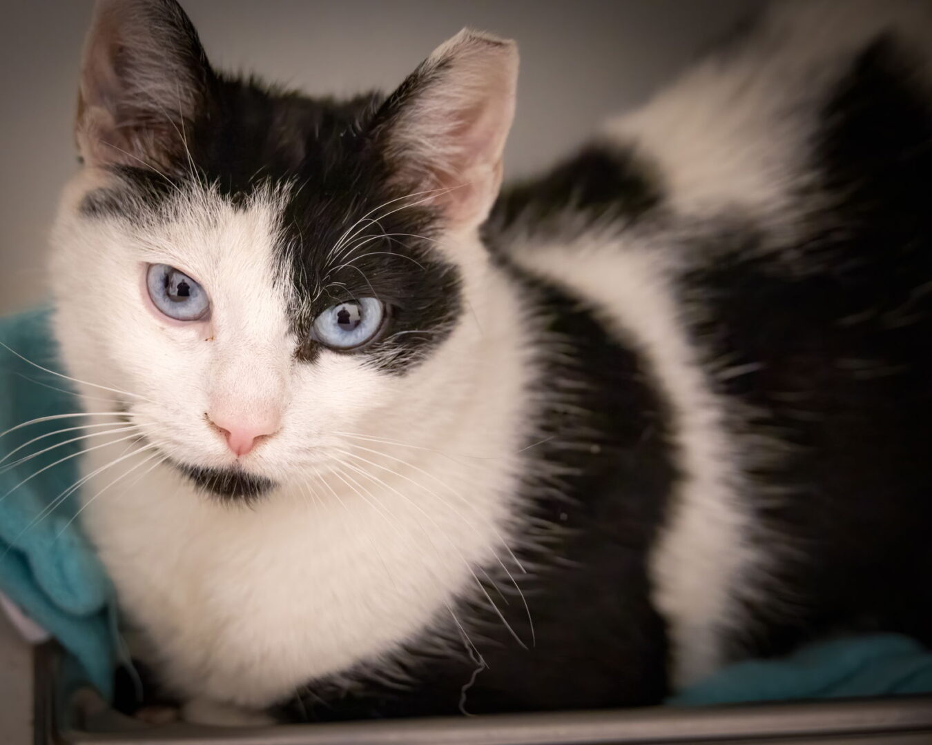 Those eyes! Please meet friendly girl Aqua! Her eyes are an amazing shade of blue. Aqua would love to be in a home environment. Please submit our no-obligation Adoption Application for a meet and greet or to adopt: https://forgottencats.org/adoption-application/. Not ready to adopt? Please consider fostering: https://forgottencats.org/foster-a-cat/. Thank you! (Foster: Trainer)