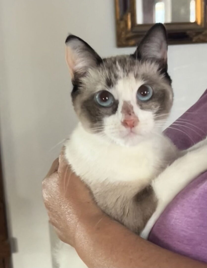 Meet Arabella Arabella is a 10 month old snowshoe Siamese with a heart full of love and a personality that shines as bright as her beautiful markings. This sweet girl is the perfect balance of affectionate and playful… She adores cuddling, happily curling up in a warm lap, purring with contentment as she soaks in the love and attention she craves. At the same time, Arabella has a lively, fun, loving spirit and delights and romping around, chasing toys, and engaging in playful antics. Her gentle nature makes her a wonderful companion, as she exudes warmth and affection in everything she does. Whether she’s snuggling up for a cozy nap or joyfully playing, Arabella‘s loving soul is evident in every moment. She is a cat who thrives on companionship, and would make an incredible addition to any home, looking for a devoted, affectionate, and a playful feline friend. With her tender heart, boundless love, and charming personality, Arabella is sure to steal hearts wherever she goes. Adoption feels $300 2/27/25