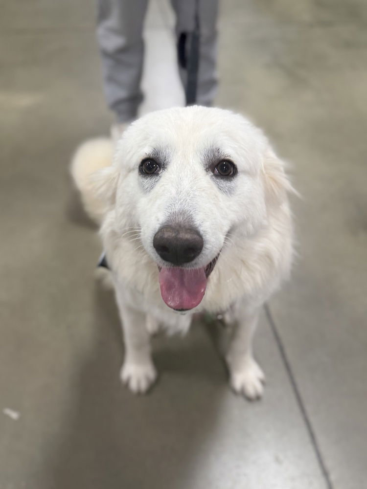 Hi! I’m Arabella! I’m a 1-year-old Great Pyrenees mix , weighing in at 65 lbs. of fluffy, gorgeous white fur .As a Great Pyrenees, I’m naturally gentle, loyal, and protective, and I love being part of the family . I’m a big softie at heart and adore people—I’m happiest when I get pets, cuddles, and attention .I get along well with other dogs , and I love making new friends, but I might be a little shy at first with really tiny dogs. I’m working on walking nicely on leash —I sometimes circle around you, but I’m learning quickly!I’m a food lover , and I eat my meals super fast, so a slow feeder might be helpful. Don’t worry, I won’t steal your food… unless you let me! As a Great Pyrenees, I’m watchful and intelligent (humble brag!), but I’m also very calm and affectionate indoors . I enjoy exploring the great outdoors, and just being part of your life.I’m up to date on all my vaccines , including Rabies, Influenza, Leptospirosis, DHPP, and Bordetella (Kennel Cough), so I’m healthy and ready for all sorts of adventures! If you’re looking for a loyal, fluffy, people-loving companion who’s sweet, smart, and full of love, I might just be the perfect girl for you .