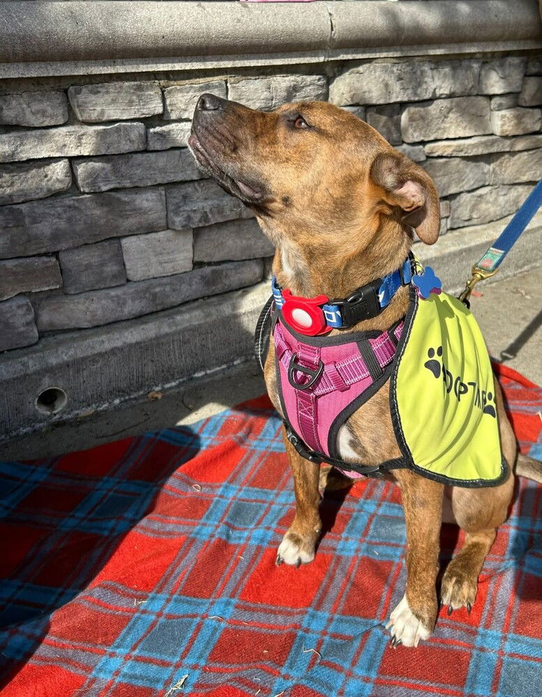 (DOB 11/07/2024) Breaking news: A new goofy brindle bombshell has officially entered the villa!! "Hi, I’m Aria, and I’m the walking ray of sunshine your life has been missing! I’m under a year old, under 40 pounds, and overflowing with personality. Basically, I’m a snuggle potato disguised as a dog — pick me up, swaddle me like a baby, hold me upside down or right side up…none of that matters to me. I’ll just melt into your arms. Becoming a puppy puddle is my superpower.But don’t let the cuddles fool you — I’m also a parkour (the activity or sport of moving rapidly through an area, negotiating obstacles by running, jumping, and climbing prodigy. I can launch myself off big dogs like I’m auditioning for an action movie. When I’m not practicing my stunts, I’m zooming up and down stairs or racing circles in the yard to show off my lightning speed. I love other dogs (the more the merrier), kids (can’t decide who loves who more), and long walks with the pack. That said, I’m confident enough to be the star of a one-dog show too. Either way, I’ll keep myself entertained with toys — squeaky, rope, ball… you name it, I love it. I already know “sit,” nailed “shake” in under ten minutes, and I’m working hard on potty training & crate training (progress report: improving daily). Oh, and fair warning — I snore. Sometimes I even fart in my sleep. Don’t worry, it’s just my way of surrounding you with love.So, if you’re looking for your soul dog — cuddly, hilarious, smart, and just a little bit ridiculous — look no further. I’m ready to pack up my toys, move into your heart, and never leave. If you want to see me in action catch me on TikTok @Adopt.Aria!"As part of Aria’s $300 adoption fee, she will be neutered, microchipped, up to date on age-appropriate vaccines, and current on her monthly flea/tick and heartworm preventatives. If you have questions about this sweet pup, you can email: Dogteam@pawsforlifenc.org. If you wish to adopt Aria, you can complete an online application for her under the Adopt a Pet Tab on our website: www.pawsforlifenc.org.