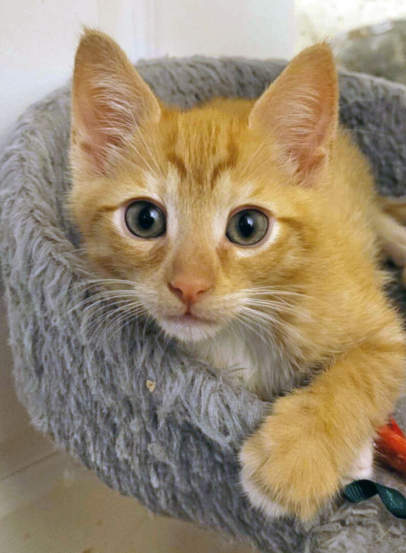I am currently available for adoption at the Lake Forest Petsmart. If you’re interested in adopting me, fill out an application on our website www.carmaoc.org Hi! My name is Asparagus aka Gus Gus and I am one of seven kittens in a foster home to my momma Little Pea. I am a very sweet affectionate boy that loves to play and explore my environment. I like to chase the cat wand toys and bat around balls and fuzzy mice. I also enjoy wrestling and play stalking with my siblings. I would like to be adopted with a sibling or have another kitty friend in my new home. After a good play session I will look to curl up in your lap for a nice nap. I have been around other cats in my foster home and did well with them. I was also introduced to a dog in my foster home and I was cautious but curious with her. My adoption fee is $175. That includes spay/neuter, microchip, FIV/FeLV combo test, current vaccines and health check.