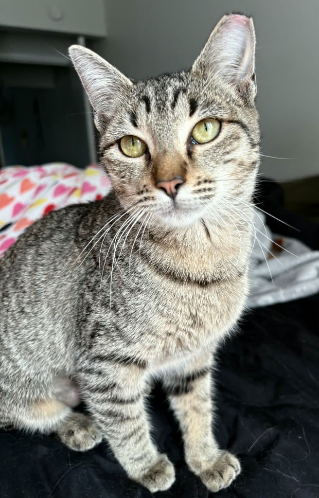 Meet Aspartame – the sweetest girl you will ever cuddle!Aspartame is pure affection wrapped in a soft little body. She loves brushing against your legs, asking for gentle head scratches, and soaking up every bit of attention she can get. She has a naturally loving, calm temperament and has never shown an ounce of aggression. She listens well, responds beautifully to affection, and is happiest when she is close to her humans. Aspartame is a happy, healthy litter box cat who is ready for her forever home! She promises to love you forever!To inquire about adopting this cat please complete an adoption application at tinyurl.com/ccapadoptions Once you submit an adoption application, a foster will reach out within 48 hours to schedule a meet-and-greet or ask any additional questions. If you haven’t heard back within that time, please contact **adoptions@sanantonioferalcats.org** so we can follow up. If the cat you’re interested in isn’t listed in the dropdown menu, it may be pending adoption or recently adopted, but the website hasn’t been updated yet. Feel free to email us for confirmation. Thank you for choosing to adopt one of our amazing cats!