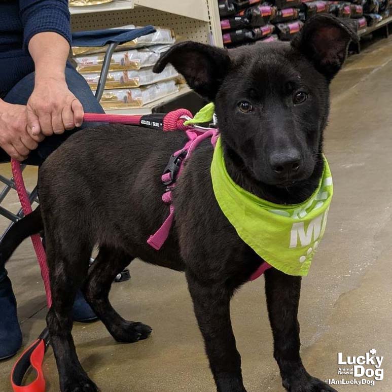 pretty girl ISO happily ever after! ASPEN NEEDS A FOSTER OR FOREVER HOME!!!! Name: Aspen Best Guess for Breed: Border collie and flat coated retriever mix Best Guess for Age: 6 months as of March 2025 SEX: Female Approximate Weight: 38 lbs as of 3/5/25; she is still growing! Gets Along With: Other dogs. We haven’t seen him with cats but we are happy to discuss integration techniques with any potential adopters! Currently Living at: South Carolina shelter; needs a foster or forever home in the DC area to get up here. Aspen is Looking For: Romps in parks and world exploration by her new humans’ side! This pretty girl is eager to burn off all that young-dog energy and make pup and people pals along the way. Exploring all the toys to see what she likes best – ropes for tug? Squeaky plushies to chew on? Balls for fetch? Let’s find out! And dog school, too, so she can show how super fast she learns. Most of all, though, she wants to know where her home is, to know she’s safe and loved for all her days. In exchange, she promises whacking tail wags and loyal companionship and adoring gazes. What do you say? Does that sound like a fair trade to you? What My Foster Says About Me: We will update this once she has arrived in the DC area and spent some time with her foster. Lucky Dog cannot guarantee any dog is housebroken. All of our dogs are working on their crate training. TO ADOPT: The adoption fee for this puppy is $485, which includes the cost of routine vetting, including vaccinations and spay/neuter. If you are interested in adopting, please complete the Adoption Questionnaire online at bit.ly/adoptaluckydog . Lucky Dog Animal Rescue does our best to provide accurate information about the dogs we have for adoption. That said, we cannot make any guarantees about age, breed or temperament. Thank you for contacting Lucky Dog Animal Rescue and helping to save a life! Please visit us online at www.luckydoganimalrescue.org . BE A FOSTER!!! Fosters make it possible for Lucky Dog Animal Rescue to save and care for homeless and abandoned dogs! To learn about fostering, please contact fostering@luckydoganimalrescue.org! BE A SPONSOR!!!! Sponsors help Lucky Dog support the many dogs we save. To learn more about sponsorship, please contact info@luckydoganimalrescue.org !