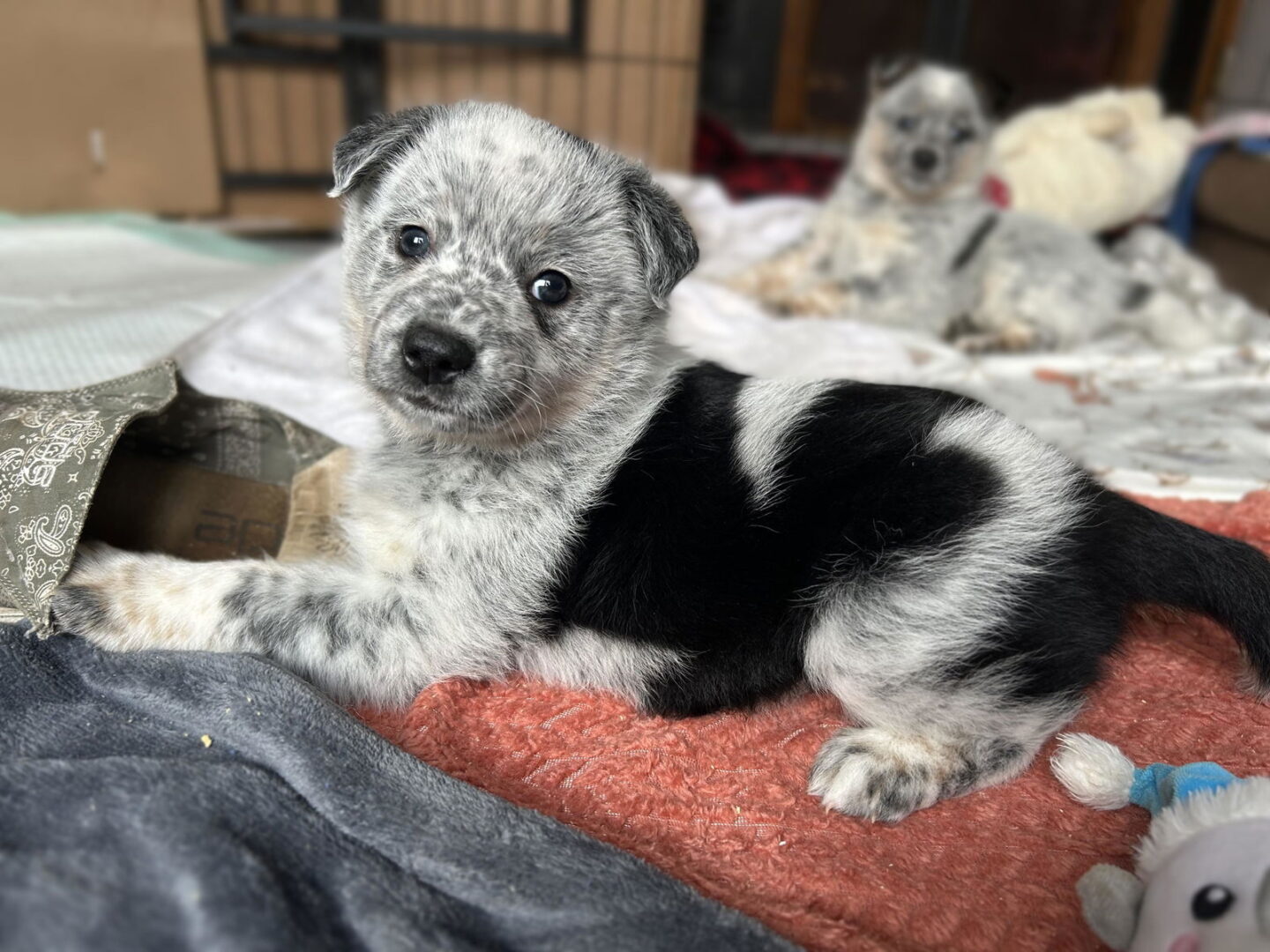 See Astrid’s HomepageGo to our official websiteYou can fill out an adoption application online on our official website.Meet Astrid!! Astrid is a spirited little pup with a dash of sass and a whole lot of charm! Her striking black markings on her back, merle-speckled coat, and an eye-catching black spot on her forehead make her absolutely irresistible. She’s sure to turn heads wherever she goes! Astrid is full of playful energy and has a feisty side—always eager to join in the fun with her sisters but determined to get the last word in. One of her favorite pastimes is carrying toys around in her mouth, proudly showing off her treasures. Astrid is ready to steal your heart i f you’re looking for a lively, confident, and endlessly entertaining companion! Please contact cripecasey@gmail.com if you have any questions about Astrid. You can complete an application to adopt Astrid or any of the dogs on our website at www.comebyebcrescue.org . *** The potential adopter will get a refund on the Application Fee if it’s determined by the Foster Parent that it’s not a good match for the dog and the dog for them, if we do not process their application.