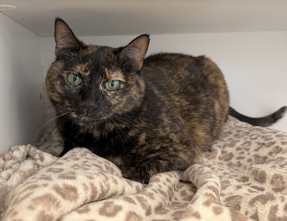 Meet Athena, a stunning tortoiseshell beauty with silky fur and captivating light green eyes. She’s a calm and independent girl who prefers window watching and cozy naps over chasing toys. While she’s not a lap cat, Athena loves to be near her humans, happily soaking up pets—especially behind the ears and along her back. She enjoys high perches where she can observe the world in peace. Athena would do best in a quiet home without young children or dogs, where she can receive affection on her terms. If you're looking for a sweet yet independent companion, Athena is your girl! Athena is FIV/FeLV negative, up to date with vaccinations, flea-treated, dewormed, microchipped, and spayed. Her birthday is estimated to be around 6/3/2017.