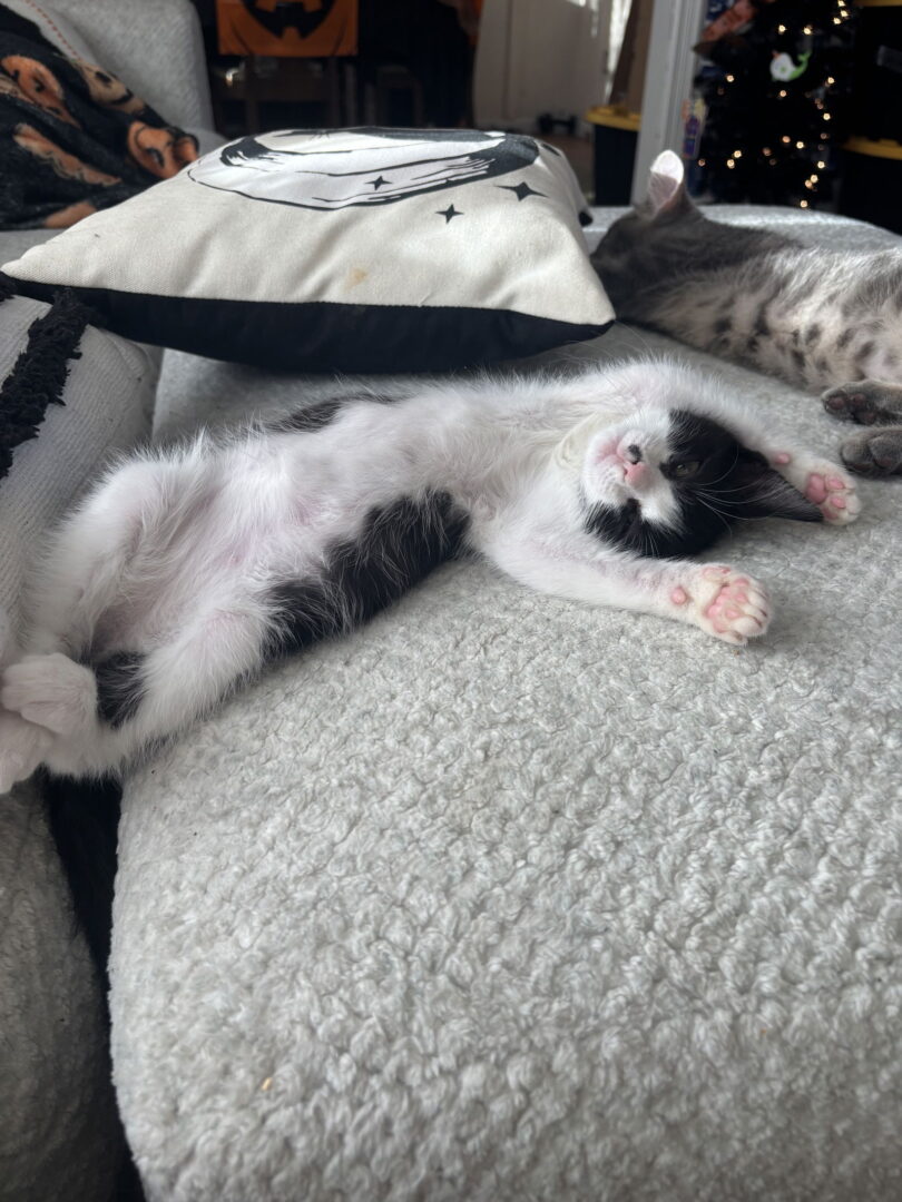 Meet Athena Moon: The Ultimate Ball of Energy! Prepare for non-stop action and affection with Athena! This gorgeous black and white kitten is a tiny package of pure enthusiasm and love, guaranteed to bring endless fun to your home. Athena is SUPER outgoing and ready to take on the world! There's no such thing as a boring moment when she's around—she's always exploring every nook and cranny. Seriously, nothing slows her down! If you're looking for a cat that matches your energy, she is a whole ball of energy that loves to play and discover new things. But it's not all zoomies! When she's done with her explorations, Athena is incredibly affectionate. She's a dedicated cuddler who will seek out a warm lap or a quiet chest for some serious snuggle time. If your home is ready for a dynamic, fearless, and deeply loving companion who defines "always on the go," then Athena is the kitten for you! Come meet this unstoppable little explorer today. How I came to Kittensnatchers: pulled from ACCT **If you are applying for a cat that needs a cat friend and you do not have another cat in the home or plan to adopt 2 cats, you application will not be processed** If you're interested in adopting this furrbaby, please fill out an application at https://forms.gle/2vMCSwUWQKVepqir5 All our animals are fully vaccinated, spayed/neutered, and microchipped prior to adoption.