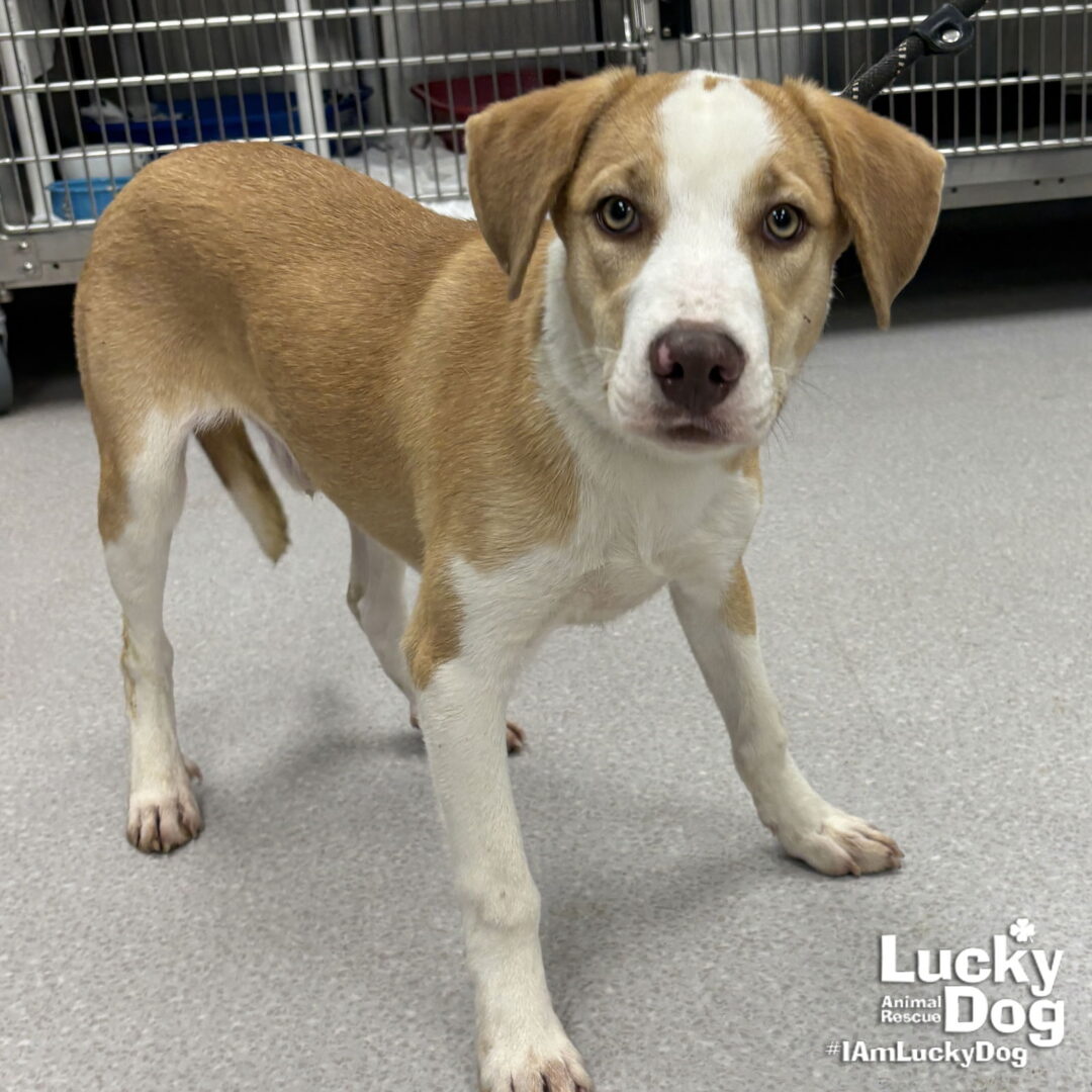 Please contact Caitlin Finn (caitlin.finn@luckydoganimalrescue.org) for more information about this pet.a great puppers no matter what month it is! AUGUST NEEDS A FOREVER HOME!!!! Name: August Best Guess for Breed: Lab and hound mix Best Guess for Age: 6 months as of November 2025 SEX: Male Approximate Weight: 34 lbs as of 11/4/25 – he is still growing! Gets Along With: Other dogs! We haven’t seen him with cats or kids but we are happy to discuss integration techniques with any potential adopters! Currently Living at: DC area foster home August is Looking For: His forever home! August is just getting out of the puppy phase and ready to be the cutest teenage doggo ever! He is eagerly looking forward to having his own humans for sniffy walks and all the adventures he can dream up. And dog school so he can show how super smart he is. And then pets and cuddles and belly scritches at the end of a fun day together. Most of all, though, he wants to know he is safe and loved. In exchange he promises all the adoring gazes and happy tail wags he can store up, and loyal companionship for all his days. What do you say? Is this pup the one who will add magic to your life? August the one for you – every month of the year?What My Foster Says About Me: We will update this once he has spent time in foster care. Lucky Dog cannot guarantee any dog is housebroken. All of our dogs are working on their crate training. TO ADOPT: The adoption fee for this dog is $460, which includes the cost of routine vetting, including vaccinations and spay/neuter. If you are interested in adopting, please complete the Adoption Questionnaire online at bit.ly/adoptaluckydog . Lucky Dog Animal Rescue does our best to provide accurate information about the dogs we have for adoption. That said, we cannot make any guarantees about age, breed or temperament. Thank you for contacting Lucky Dog Animal Rescue and helping to save a life! Please visit us online at www.luckydoganimalrescue.org . BE A FOSTER!!! Fosters make it possible for Lucky Dog Animal Rescue to save and care for homeless and abandoned dogs! To learn about fostering, please contact fostering@luckydoganimalrescue.org! BE A SPONSOR!!!! Sponsors help Lucky Dog support the many dogs we save. To learn more about sponsorship, please contact info@luckydoganimalrescue.org !