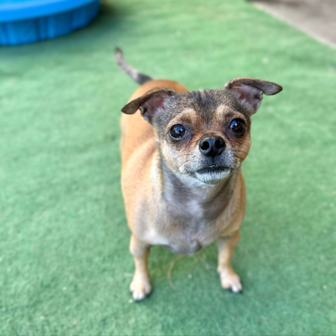 Meet Aurora aka Aurie! Aurie is a chonky Chihuahua mix, approximately four-years-old. She originally came to the shelter with multiple other dogs, as part of a hoarding case. She was adopted back in 2020 and returned recently due to health issues of her adopter. Aurie is shy and avoidant with people, and will dart away when you try to pet her, although she does take treats from your hand once she knows you. Aurie will do best in a home with no small children and a secure yard/home that she cannot escape from. We are open to Aurie being adopted, or going to a foster home to help work on her socialization. Aurie enjoys the company of other dogs and should go to a home with at least one other dog, to help her adjust to her new environment. Other than being nervous around people, she is a happy little gal who enjoys sunbathing in the yard, treat time, and socializing with other dogs. Aurie is looking for a family that will be patient with her and not expect too much, too fast. If you would like to help a scared rescue dog and think Aurie might be a fit for your lifestyle, send us an email to chitownrescue@gmail.com.