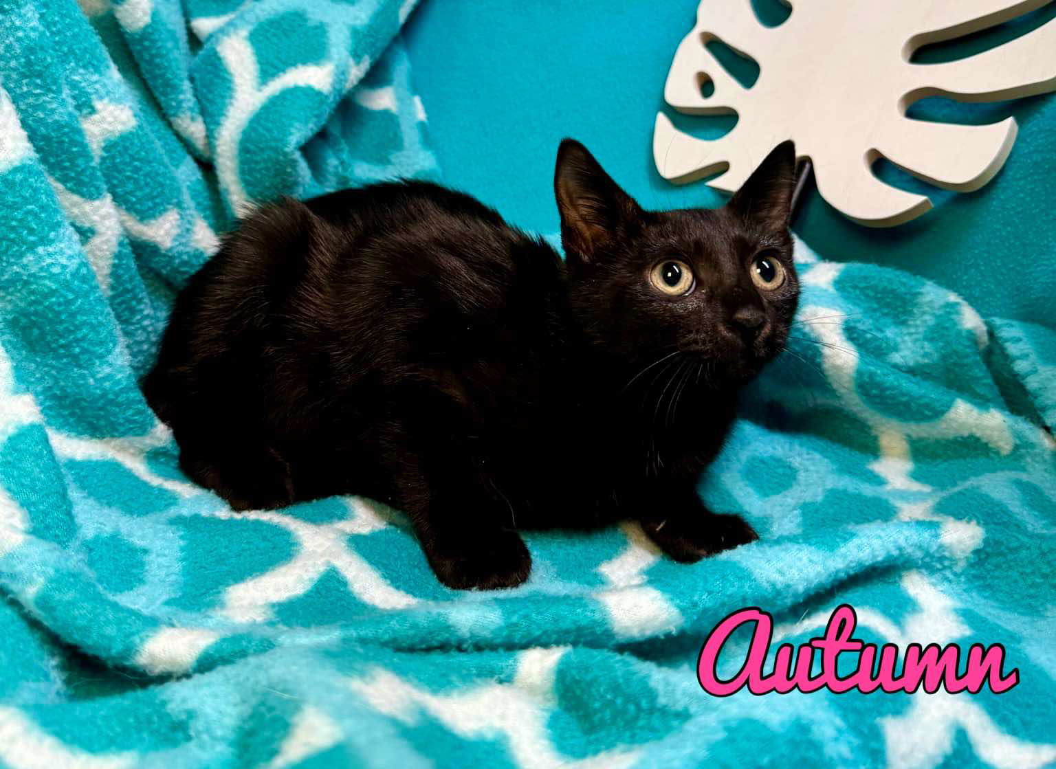 See Autumn’s HomepageGo to our official websiteYou can fill out an adoption application online on our official website. Autumn is a pretty and friendly solid black female kitten who has been in a shelter way too long. We pulled this little girl because she is so cute and she needs a home. Cat toys are a must with Autumn because she can’t wait to run and play all around your home. Who can resist this precious face? Fill out an adoption questionaire and we will contact you. Online Adoption Application