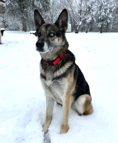 To adopt please fill out an adoption application. Sweet, friendly, well-socialized, be sure to watch her video! Ava is a 3yo female German Shepherd / husky mix who was rescued as a stray in rural TN. Ava was microchipped but, when contacted, her owner didn’t want her back. Gentle, calm, low maintenance. Great with other dogs and fine with cats, living with a dog & cat in her foster home. Great with kids and gentle with the foster mom’s young nephews. Playful with moderate activity level outside and settles down quickly in the house. Good house manners. Housebroken but never crated because she doesn’t need to be. Obeys basic commands. Loves to be with her people. When she first came to us, Ava had heartworms but she was treated without complications and is now ready for adoption. Healthy and fully vetted, current on shots, spayed, weighs about 50 pounds. AWESOME young GSD mix will make a wonderful companion (and jogging partner!) for an active family who loves the breed. To adopt please fill out an adoption application.Contact us at reply@gooddogrescue.com visit us at Good Dog Rescue