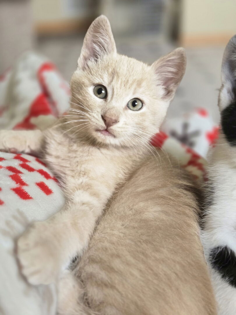 See Azuka’s HomepageGo to our official websiteYou can fill out an adoption application online on our official website. Bonded to ArmandoMeet Armando & Azuka: Bonded Brothers Seeking a Forever Home! Armando (black and white) and Azuka (buff orange) are an inseparable pair of brothers who must be adopted together. From a very young age, their bond was undeniable, always choosing each other for play and comfort. This became even clearer when Armando had a tail injury (the shaved patch is growing back nicely!); Azuka would cry inconsolably during the short times his brother was away for vet appointments, even with human company. It was then we knew for certain: these two are truly bonded and belong together. Armando is a fantastic, affectionate kitty. He loves lying on his back, eagerly accepting face kisses, and delights in slow belly and chest scratches. He's incredibly soft and adores curling up on your lap. We often pick him up just to hold and kiss him; he even likes being held like a baby! With time and focused attention, he will undoubtedly form a strong bond with his human family. Azuka is a little more reserved but communicates often with charming chirps and hums – much like his talkative mother. He also enjoys curling up on your lap, especially if Armando is already there. More than once, he has shown his affection by perching on the back of a recliner and gently licking hair. Both boys are excellent with the litter box. They love all kinds of toys – strings, balls, mice, noisy toys, scratch posts, tunnels, and cat trees. They particularly enjoy lounging in the hanging hammock and scaling to the top tier of their cat tree. They adore affection and love gazing into your eyes. Their favorite meal includes the yellow Purina Kitten kibble supplemented with one small can of wet food each day. Their nails should be kept trimmed to help protect your furniture. They haven't been around dogs. If introduced to another cat, please be aware that they can play rough, so ensure the other cat won't feel overwhelmed or ganged up on. These two delightful brothers are ready to bring double the love and purrs into their forever home! Click here to learn more about Armando! Must be adopted with his brother Armando Azuka is from a local reservation partner. To learn more about Ruff Start’s adoption process and the care our foster animals receive, please visit our How to Adopt page. If you are unable to adopt but want to help this animal and others in our care, you can donate to support the medical and veterinary needs of all Ruff Start Rescue animals.