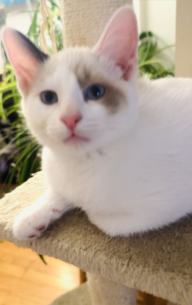Meet Azul! Azul may seem like a shy little kitten at first, but don’t let that fool you—beneath her soft and reserved exterior lies a heart full of love and affection. With a little patience and one-on-one attention, Azul will blossom and show you just how playful and snuggly she can be.This sleek and sly girl loves nothing more than chasing strings and toys, pouncing with precision, and mastering stealthy sneak attacks. When she’s not busy body-slamming her littermates in playful scuffles, Azul is the picture of elegance. Her sky-blue eyes and gentle point markings give her a beauty as unique as her sweet personality.Azul thrives in loving, calm environments and has been fostered with cats of all ages, children 12 and up, and adults. She’s great with kids and enjoys their company but would also appreciate a quieter space where she can feel safe and adored. Though she hasn’t met dogs yet, her laid-back demeanor suggests she’d do well with proper introductions.Once she feels at home, Azul will reward you with cuddles, affection, and endless playtime. She needs a feline friend in her forever home and would love to be adopted with one of her siblings—Luna, Smudge, Buttons, Pepper, or Dot—to share in her adventures.If you’re looking for a kitten who’s as sweet as she is stunning, Azul is ready to light up your life with her gentle charm and playful spirit. WE DO NOT HAVE A PHYSICAL LOCATION AS WE ARE A FOSTER-BASED ORGANIZATION. PLEASE SUBMIT AN APPLICATION TO BE IMMEDIATELY CONNECTED TO A SCREENER.Apply at online application (catsfff.org/adopt)View all of our adoptable cats here (catsfff.org/cats)Our adoption fees are listed here (catsfff.org/adoption-fees)