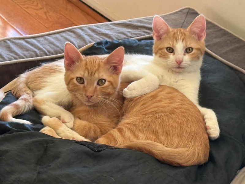 These 2 little kittens have the closest bond I have ever seen, so they need to be adopted as a pair. The yellow tabby, Baby, walks around meowing, sounds like chirping, when he doesn’t see his brother. He will sometimes run from you, but is totally fine if you pick him up while he is sleeping. Baby has the loudest purr. The yellow & white tabby, Lemon, is more independent and will come lay with you. They love playtime and have been raised with my 2 cats and medium sized dog. They are fully trained, neutered, with age appropriate shots. To adopt a kitten/pair please click here https://www.happypawskittenrescue.org/applications-and-contracts.htm