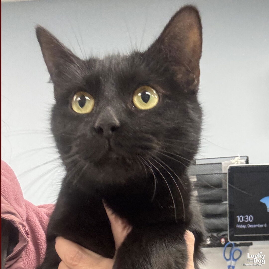Please contact Lauren McCarty (laurenmc@luckydoganimalrescue.org) for more information about this pet.Sweet house panther needs a forever home!BAILEE NEEDS A FOREVER HOME!!!! Name: Bailee Best Guess for Breed: Domestic Short Hair Best Guess for Age: 1 year DOB: 10/28/23 SEX: Female Approximate Weight: 8lbs Coloring: Black Type of Hair: Short Gets Along With: With proper integration, Bailee will likely get along with other cats, dogs, and kids. We’re happy to help with tips and tricks! Currently Living at: Check out our Lucky Cats on Instagram at the Meo Maison Cat Cafe Méo Maison Cat Cafe (1336 Wisconsin Ave NW, Washington, DC 20007). You can come visit me at Méo Maison Cat Cafe during the cafe’s operating hours! If you would like to visit the cafe, please make an appointment on their website (meomaison.com). If you want to adopt me, you will need to complete the adoption process through Lucky Dog Animal Rescue. I am Looking For: My forever home! Hi- I’m Bailee – a gorgeous kitty. I won’t ask for much…just some love, cuddles and lots of toys so I can run and play and be my amazing self. What My Foster Says About Me: Coming soon! TO ADOPT: The adoption fee for adult cats will be $200 ($350 for two cats adopted together). The adoption fee for a kitten (under 7 months old) is $220 ($380 for two kittens adopted together). If you are interested in adopting, please complete the Adoption Questionnaire online at bit.ly/adoptaluckycat. Lucky Dog Animal Rescue does our best to provide accurate information about the cats we have for adoption. That said, we cannot make any guarantees about age, breed or temperament. Thank you for contacting Lucky Dog Animal Rescue and helping to save a life! Please visit us online at www.luckydoganimalrescue.org . BE A FOSTER!!! Fosters make it possible for Lucky Dog Animal Rescue to save and care for homeless and abandoned dogs! To learn about fostering, please contact fostering@luckydoganimalrescue.org BE A SPONSOR!!!! Sponsors help Lucky Dog support the many dogs we save. To learn more about sponsorship, please contact info@luckydoganimalrescue.org !