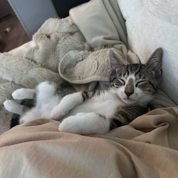 See Bailey’s HomepageGo to our official websiteBailey is a curious, playful kitten who loves exploring- even sneaking into the sink! He's fascinated by everything around him, especially your food, and enjoys kneading and suckling on soft blankets. Social and affectionate. Bailey gets along well with other cats and will eagerly greet you at the door or follow you around the house. He'd be happiest in a home with another playful cat or with someone who's around often to enjoy his sweet, adventurous nature. His adoption fee is $125.