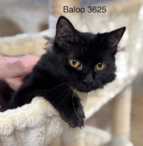 Baloo is a very distinctive looking 8 month old male cat who you can pick out in a crowd of black cats. The reason for this is the white tufts of fur behind both ears. He’s a pretty cool looking cat. He was surrendered to us because his owner was not allowed to keep him in the apartment. Baloo is sweet, friendly, affectionate and loves being petted. YOU CAN MEET HIM AT OUR CENTER AT 571 NE44th St. (NW corner of Prospect (44 th and 6 th ) in Oakland Park, FL 33334. We encourage you to file an on line application for this or any of our pets by clicking HERE or by going to www.animal-aid.com for a Pet Adoption Application . Please include the name of the cat(s) or kitten(s). Stop by anytime when we're open. Please visit our web site at www.animal-aid.com to see the hours for our Adoption Center located at 571 NE44th St. (NW corner of Prospect (44 th and 6 th ) in Oakland Park, FL 33334 and our pets available for adoption. Many of our cats are shown 7 days a week at the Petsmart at 12051 Sunrise in Plantation. The donation we are requesting is $95 and includes our medical program; all vaccines, rabies vaccine, fecal exam, de-worming, blood test for AIDS and Leukemia, spay or neuter, first month Advantage (flea treatment) plus a coupon for Science Diet food.