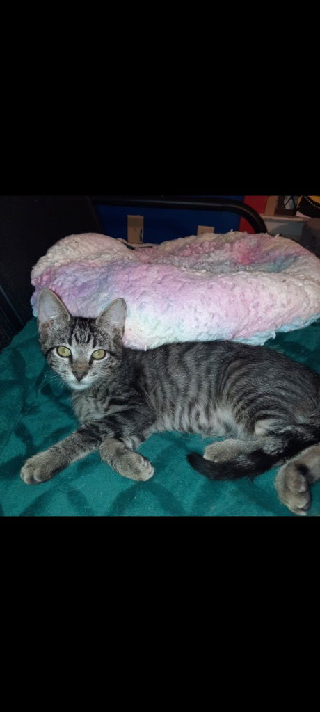 Hi! I’m Bamm-Bamm, a playful kitten who loves quiet times and chasing wand toys. Though I’m a bit shy, I warm up quickly and love to show my friendly side. I spend my days pouncing on batted toys and exploring every cozy corner of my current home. I dream of a forever home where I can share my playful adventures and snuggle up after a fun day. If you’re looking for a sweet, playful companion, I’m your perfect match! Let’s create endless memories together.To inquire about adopting this cat please complete an adoption application at tinyurl.com/ccapadoptions Once you submit an adoption application, a foster will reach out within 48 hours to schedule a meet-and-greet or ask any additional questions. If you haven’t heard back within that time, please contact **adoptions@sanantonioferalcats.org** so we can follow up. If the cat you’re interested in isn’t listed in the dropdown menu, it may be pending adoption or recently adopted, but the website hasn’t been updated yet. Feel free to email us for confirmation. Thank you for choosing to adopt one of our amazing cats!