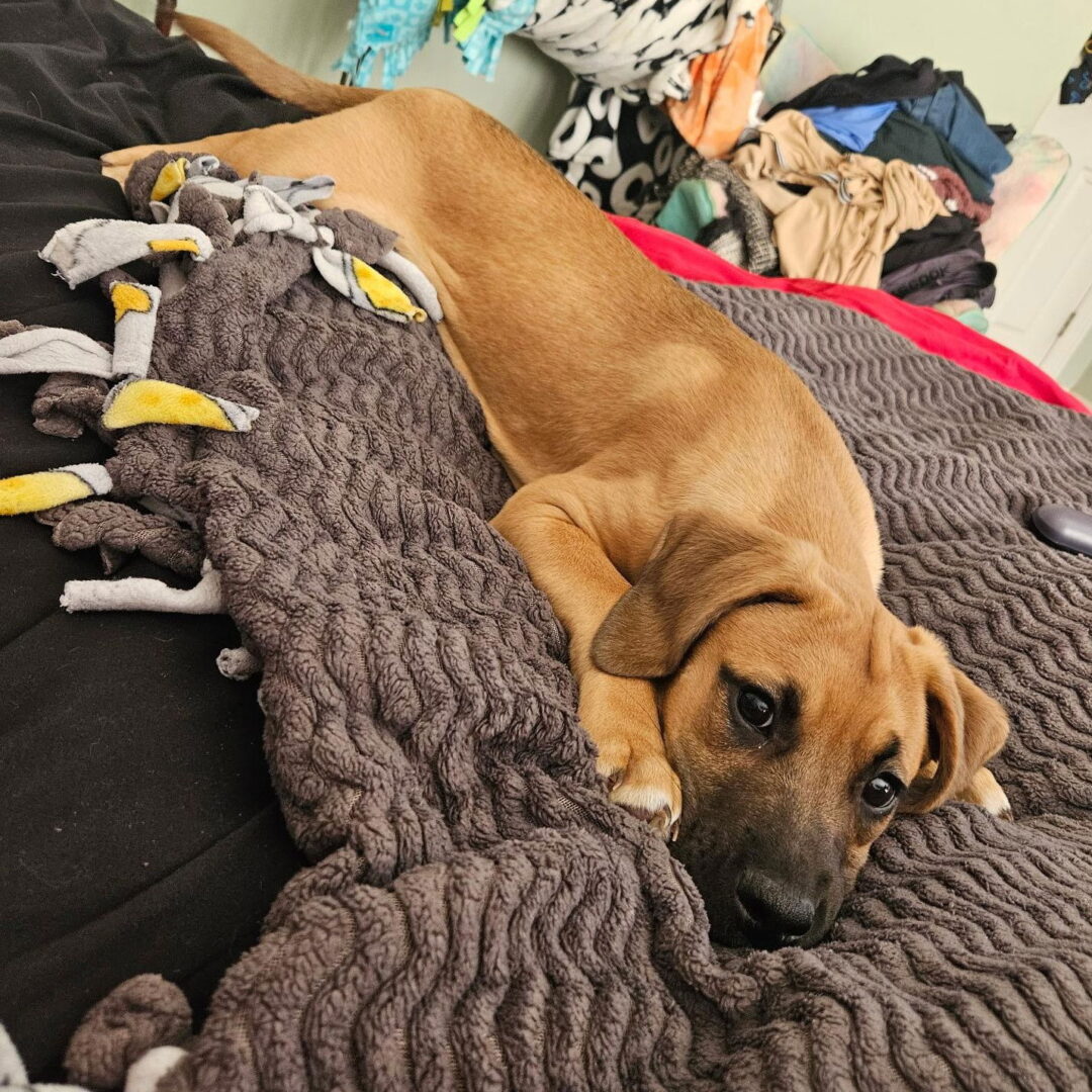 See BANANA BREAD’s HomepageGo to our official website Meet Banana Bread, one of our 5 Breakfast Bunch Pals! This little girl is 100% sweetness, with a bunch of adorableness thrown in to make her perfect! She and her "siblings" (2 different litters were together, so we're not sure if the 5 we got are all related) were born and living outside during the record-breaking cold, snow and ice that we had recently! When we learned about them, and that 4 had already not made it due to the temperatures, we had to help! So, we did, and these babies are thriving and love everyone! Banana weighed 13 lbs at only about 6 weeks old! So, just a guess but.. she is probably going to be a big girl. ?? If you are interested in seeing if this cute little bundle could be the Pal of your dreams, apply here: https://new.shelterluv.com/matchme/adopt/GARP/Dog