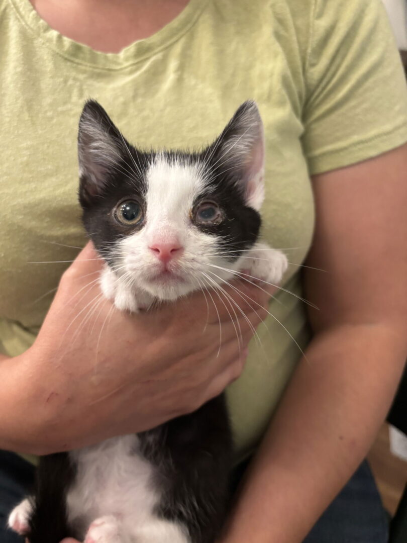 Barcode =^..^= , DSH Black/White, Female , DOB 4/6/2025 https://cataroundtownproject.org/adoption-application/