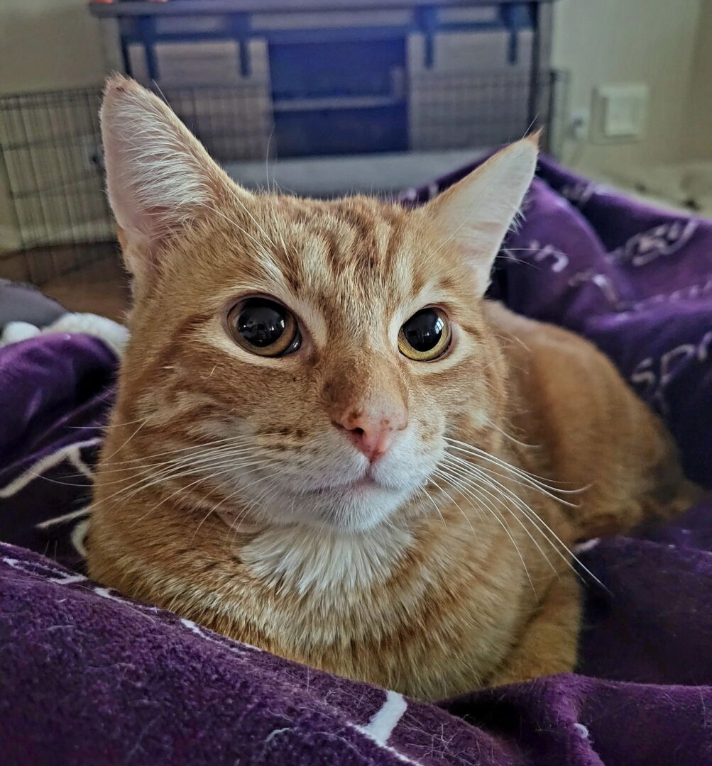 Meet Barnabus: The Regal Snuggle King with Boundaries Barnabus is a striking 1-year-old dark orange tabby with a coat that glows like autumn leaves and a personality that’s equal parts warmth and wisdom. Still young and full of charm, he’s a cuddle enthusiast who loves curling up beside his favorite human for a quiet petting session—especially after a spirited round of play with his beloved catnip-spritzed toys. But Barnabus isn’t just a lap cat. He’s a sun-chaser, often found stretched out in golden patches of light, soaking in the warmth like royalty on his throne. He values his independence and knows how to ask for space when he needs it, using the subtle signals only cat-savvy humans truly understand. That’s why Barnabus is looking for a calm, child-free home—one where his boundaries are respected and his quiet moments are cherished. He thrives in an environment where affection is offered gently and his need for solitude is honored. He is ok with calm dogs of all sizes but needs time to warm up to other cats. If you're someone who speaks fluent cat and appreciates the quiet joy of a companion who loves deeply but wisely, Barnabus is ready to claim his sunny spot in your home.