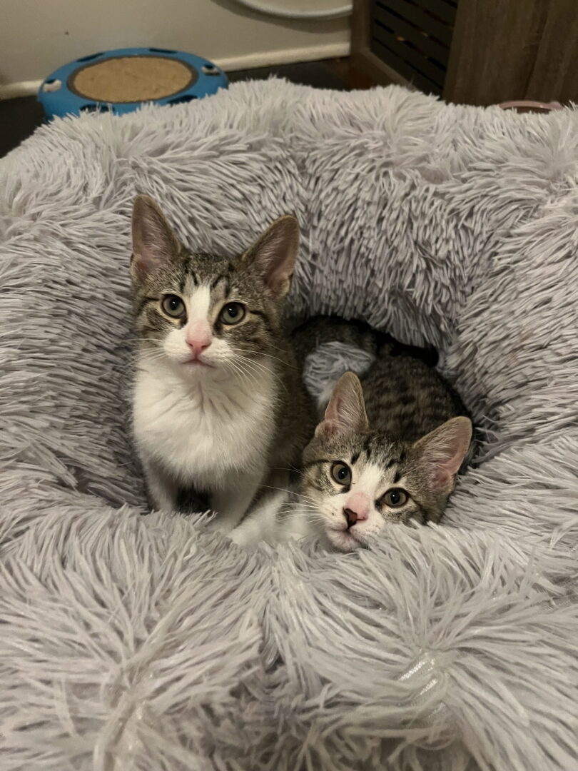 See Barnacle & Turtle’s HomepageGo to our official websiteYou can fill out an adoption application online on our official website. Meet bonded brothers Turtle & Barnacle – two sweet little boys looking for their forever home together. Turtle & Barnacle came into rescue a little on the shyer side but have blossomed into two brave and curious boys. Where one goes the other follows, whether that be zooming across the floor or climbing the kitchen chairs, these two provide endless entertainment. Turtle (pink nose) is the smaller brother but he’s often the leader of the duo. He’s also the vocal of the two and will often greet his foster mom with his mighty squeak. Turtle enjoys pets on his head and on his back and often purrs under the attention of his people. Turtle loves to chase toys when they’re thrown, especially ones that make noise. Turtle also loves playing in any shoes left on the floor and finding things he probably shouldn’t be climbing on. Barnacle (black nose), the larger of the two, is often the quiet observer of the brothers – preferring to watch from a distance before joining in. Barnacle is also the lover of the two, he loves to be pet and will perch himself in your lap once he gets to know you. Barnacle loves chasing after his brother and likes toys that make noise. Barnacle also loves to roll around on rugs, collecting all the different smells he can. Turtle & Barnacle have spent time around older cats and a dog and would do fine in a home with both. These cuties are currently fostered in Minneapolis. Interested in adopting? Please complete an adoption interest form at https://redemptionroadrescue.rescuegroups.org/forms/ If you are viewing this listing on PETFINDER there is often MORE INFO ON and MORE PICS OF the animal DIRECTLY ON OUR WEBSITE. *Adoption Fee for Barnacle & Turtle together is $610+ MN tax. Adopter responsible for finishing final distemper vaccine at own vet, at own cost. redemptionroad.mn@gmail.com https://www.facebook.com/RedemptionRoadRescue Barnacle & Turtle are fully vetted appropriate for age: neutered, FVRCP/Distemper 1st & 2nd vaccine, felv/fiv tested negative, microchipped with lifetime chip registration & dewormed.
