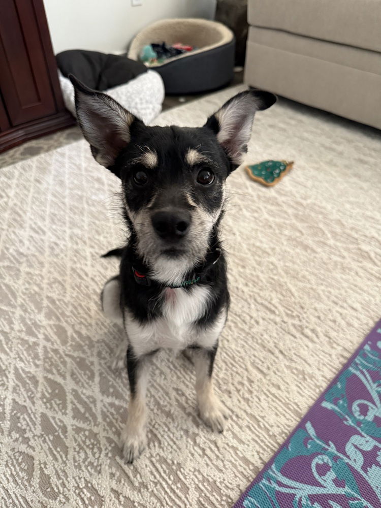 Meet Baxter!Baxter is a sweet, playful, and incredibly smart pup who’s ready to bring love and laughs to his forever home! He knows “sit,” “paw,” and “get in” (to enter his crate) and is working hard on potty training using a bell by the door.Baxter is crate trained and even enjoys his crate, often putting himself to bed when he’s ready for a nap.This affectionate boy loves snuggles, though he’s still figuring out how to relax into them completely. He’s made great progress and loves to sleep at your feet while you’re working, enjoying being close to his humans.When it’s playtime, Baxter shines! He’s all about toys and will happily spend hours entertaining himself or playing with his foster brother, Chip. Food-motivated and eager to learn, Baxter is a quick study for anyone looking to teach him new tricks.Baxter’s goofy side is pure joy—he’ll paw at you to demand endless pets, give sweet kisses, and make the funniest Yoshi-like sounds when he yawns. He’s also a bit of a curious explorer and has even figured out how to open drawers, earning himself the title of “underwear bandit” in his foster home.While he hasn’t met kids or cats yet, Baxter came from a foster home with multiple dogs and small kids and would likely thrive in a home with another playful pup.If you’re looking for a sweet, smart, and slightly dorky companion who will keep you laughing and melt your heart, Baxter is your boy!Interested in adopting this pet? Please contact us at questions@awishforanimals.org for more info.
