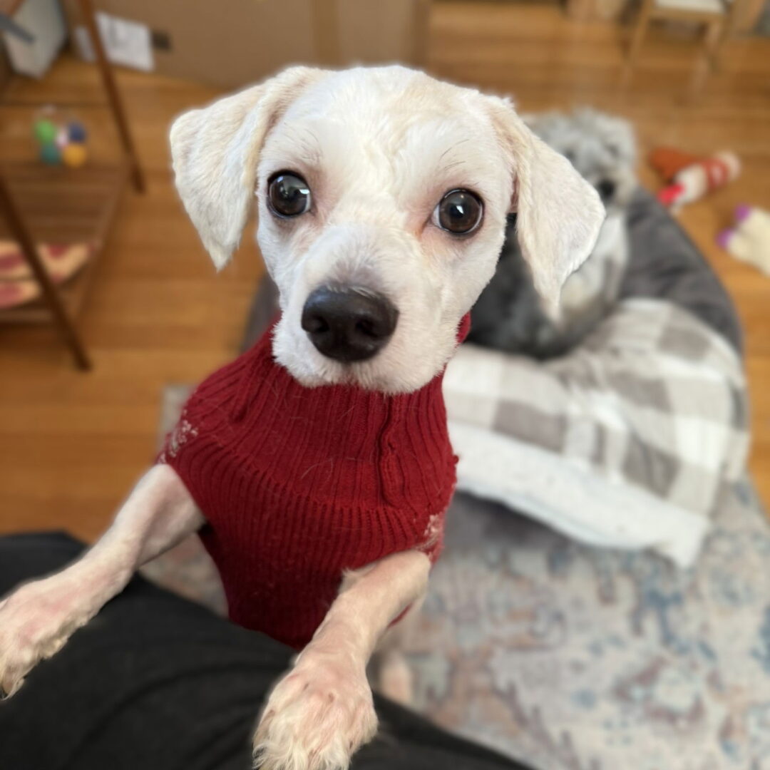 {s3829code380/} If you would like to provide this dog a loving home, please fill out a pre-adoption application. Have a question? Please read our Frequently Asked Questions and Adoption Processed Explained documentation. _________ B I O ______________ Name: Beaker Size: ~Small range: Up to 25 lbs Adoption Donation: $250 (applicable sales tax included). Adoption fees may be paid by cash or check.  Other:  Neutered Male, Vaccinations current, Microchip, Not Apartment Friendly Beaker is ready to “meep‑meep” his way into your heart. Foster Home Feedback ** Not Apartment Friendly 1/16/26 Foster Feedback: We’ve had Beaker for less than a week. Beaker is a gentle, quiet boy. He rarely barks when we’re home even when the resident dogs bark. He’s a bit reserved right now, but every day he shows a little more of who he is. Beaker has chosen his foster mom as his person and has become her constant shadow. He mostly avoids his foster dad and will occasionally bark to let him know he’s not ready to be friends yet. With slow introductions and a patient, gentle approach, he has the potential to build trust, so he’ll need someone who understands that he may take time to warm up. Beaker is still working on house training and does some marking, but he’s making progress with routine and patience. So far he mostly will only go outside if his foster mom goes with him. He seems to dislike the cold, so he appreciates quick potty breaks and cozy indoor time. Beaker gets along well with our small dogs, both male and female, and has been respectful with the resident cat. He would do well in a home with calm, friendly animals who can help him build confidence. Because he barks when left alone, Beaker may not be the best fit for apartments or homes with shared walls. Above all, Beaker needs a patient adopter willing to go at his pace. Underneath his fear is an incredibly sweet, loving dog who wants nothing more than to feel safe with his person. If you’re looking for a sweet, loyal companion who will adore you with his whole heart, Beaker might be your boy. To view additional dogs available for adoption, please see our website: www.4luvofdog.org