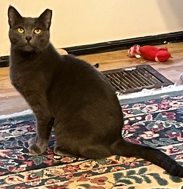 NOT BELIEVED TO BE HYPOALLERGENIC. Beano ~ 4 years old (DOB ~ 3/15/20) is a beautiful Russian blue (mix?), whose owner died. When we got her, she was an outside cat. She is shy, but when I had her in a small room and got my hands on her, she did not seem to mind a good petting. If you will give her wet food, she may get friendlier, or may never fully socialize. She hides here, even though she has lived here 2 years, likely because there are a couple other scaredy cats who have influenced her. She is quite comfortable with other cats. May not be happy without another cat. ***she will run unless you start her in a small room & make it a point to pet her. She loves a cat tree and sunny window. Good with other cats. Tested, spayed, shots, microchipped. Adoption fee $100, as shots will need updating. 30-day money back satisfaction return policy, application required. Email marla@adopt-a-kitty.org or text 251-404-0022 ADOPT-A-KITTY.ORG
