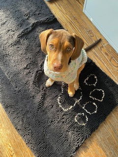 Bear is now 15 weeks old and has had his second set of vaccines He is currently 27lbs and should be a medium to large breed as the vet said he might reach about 70 – 80lbs. He is currently eating Royal Canin large breed 3 cups 3 times a day. He is not fully housetrained yet but almost there using the pee pads when necessary but is getting used to letting us know he needs to go to the bathroom. We are trying to train him with a doggy doorbell and it is going well. He has not been destructive when left alone but he always had a doggy companion with him so he has never really been alone. He is currently teething has not destroyed anything but will occasionally chew his puppy pads. He is living with 2 other dogs and loves being around them and plays very well with them. A home with another dogs or kids that would engage with him would be great; he's got a little separation anxiety but it is getting better. Once he is done playing he is the biggest cuddle bug that prefers to fall asleep in your arms after giving you a million kisses. He sleeps throughout the night curled up in bed and loves to be touching his human as he snores. He is friendly with every human (including children) and every dog that he has ever met as we have been socializing him with all kinds of different activities. He has done well in the car so far and is very smart already learning commands like sit, paw, down and wait. He does well on a leash so far. I can’t say anything about cats and he has not been around them yet but I can’t see it to be a big problem. For having some hound in him he is not very vocal at all and I have only hears him bark when he is playing with other dogs. He does not seem to be reactive or has any food guarding. He will let us take things without issue He is an amazing puppy with plenty of energy, lots of fun and an amazing personality that will keep you laughing all day. He is an absolute joy to have and will bring any family who adopts him lots of happiness. He is one of the best behaved puppies that have been in our home.
