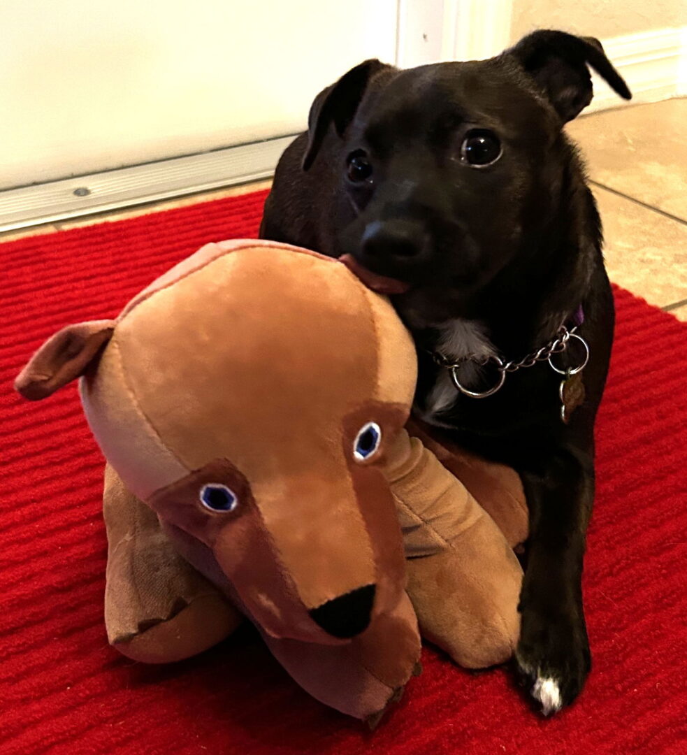 See Bear Pup’s HomepageGo to our official websiteYou can fill out an adoption application online on our official website.Bear Pup is a sweet Jack Russell Terrier mix, full of puppy enthusiasm wagging her tail constantly! She is very intelligent and loves attention! At six months old, Bear enjoys learning new things, playing ball, getting belly rubs, and giving lots of love. She likes the fetch game A LOT and will play fetch all day if given the opportunity (she brings the ball back every time). As soon as Bear wakes up she puts a toy in her mouth. When someone comes home, he/she gets greeted by her with a toy in her mouth. When Bear sees another dog a toy immediately goes in her mouth. At the end of the day the foster home floors have about 20 toys all over it!!! The foster family commented that out of all the dogs they have fostered Bear is the dog that loves toys the most. Bear would enjoy having a fenced yard to run and play ball in, or a large indoor space with lots of toys accompanied by outdoor walks. Her favorite activities are holding or running after her ball, squeaking toys, and "shaking" her squirrel stuffy. But as soon as someone sits down in a chair, Bear changes her thought process and jumps up to be next to him/her and lays calmly cuddling with that person. Bear loves people, especially kids, and insists on sleeping in a human bed being as close as possible to that person. Bear has helped around the foster house…. Laundry = When getting a load of clothes from the dryer a sock was dropped. Bear picked it up and carried it in her mouth as she followed the person to the bedroom. Cleaning = Bear put her toy ball in her safe location and then to her surprise that room door was closed. When the door opened again (hours later) she remembered to crawl under the bed and got her ball. Sweeping = Because Bear wants to be wherever humans are she walked beside the Swifter pointing out to her foster if she saw a crumb. Bear lived in a house with her littermates before coming to 4 Lucky Dogs and at her current foster home she lives with three dogs. She loves playing with dogs such as chasing, wrestling, tug-of-war, keep-away, and play-bow positions. She also likes being wherever dogs are such as following a foster family member or sharing a dog bed cuddling next to one. It would be best for Bear if she lived with another dog or with an owner who can provide her regular interaction with other dogs. She is new to wearing a collar and being on a leash so is experiencing for the first time how to walk with them on. The adopter will need to continue to teach her this skill. Bear gets very nervous riding in the car. She may drool or get nauseous. As she gets more secure about going places outside of the home this may change – we just want the potential adopter to be aware that Bear may not like traveling long distances. Bear’s adoption fee is $620 and covers all shots including rabies, dewormer, microchip, and spay. The average lifespan for this breed is 15 years. Therefore, Bear’s adopter will need to be prepared to care for her for around 14 more years so she will not have to move to a different home. She is currently being fostered in the Plant City area. ***We are a foster-based rescue with no shelter or facility to view our dogs, and our address is a mailing address only. Please be patient as we are an all-volunteer rescue, and our rescue dogs are in various loving foster homes throughout West-Central Florida. As a general rule we try to limit our adoptions to within the state of FL. If interested in one of our dogs, please fill out a foster or adoption application at www.4luckydogs.org, and we will contact you by phone/text if we feel your application is the best fit out of the ones received.***