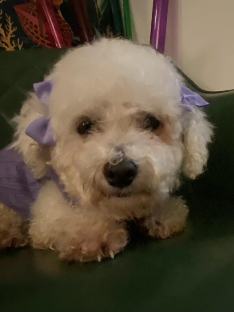 See Beatrix’s HomepageGo to our official websiteYou can fill out an adoption application online on our official website.Beatrix is a discarded breeder dog. She is 5 years old weighing about 12 pounds..Please visit our website for more info on our adoption process and adoption application www.barkdogfarm.org Before applying be sure you have thoroughly researched Great Pyrenees. They can be stubborn, prone to barking, overly protective and cannot be off leash. You WILL NOT train a pyr to boundaries. Please be sure all family members are in agreement to adopting and your family is ready to bring dog home now. Applicants must be at least 21 years old. We do not have blanket criteria we try to find the best match based on the animals needs.. A volunteer will be in touch to discuss your application and the dog to determine if it is a good match. Your vet and two references will be called. A virtual home visit done. Once approved a meet and greet at the farm will take place. If all are in agreement an adoption contract will be signed and adoption fee paid. Adoption fees for dogs are $500. for adults over 12 months, $600 for puppies 12 months and younger. Fees for seniors, special needs or harder to place dogs will be determined by our Board of Directors. All dogs will be altered when adoption is finalized. This may involve young puppies be given until a certain age to be altered. All animals are up to date on age appropriate core vaccines, negative for parasites, heart worm and lyme tested if 6 months or older, microchipped and have a current health certificate. Proof of a basic obedience course completed is part of our adoption contract within six months. Our descriptions are based on shelter evaluations, input from foster homes and interactions with our volunteers but are in no way a guarantee of temperment. We show animals by appointment only. This is usually done meet outdoors so please dress accordingly. Please email barkingdogfrm@gmail.com with any questions or to arrange a meet and greet.