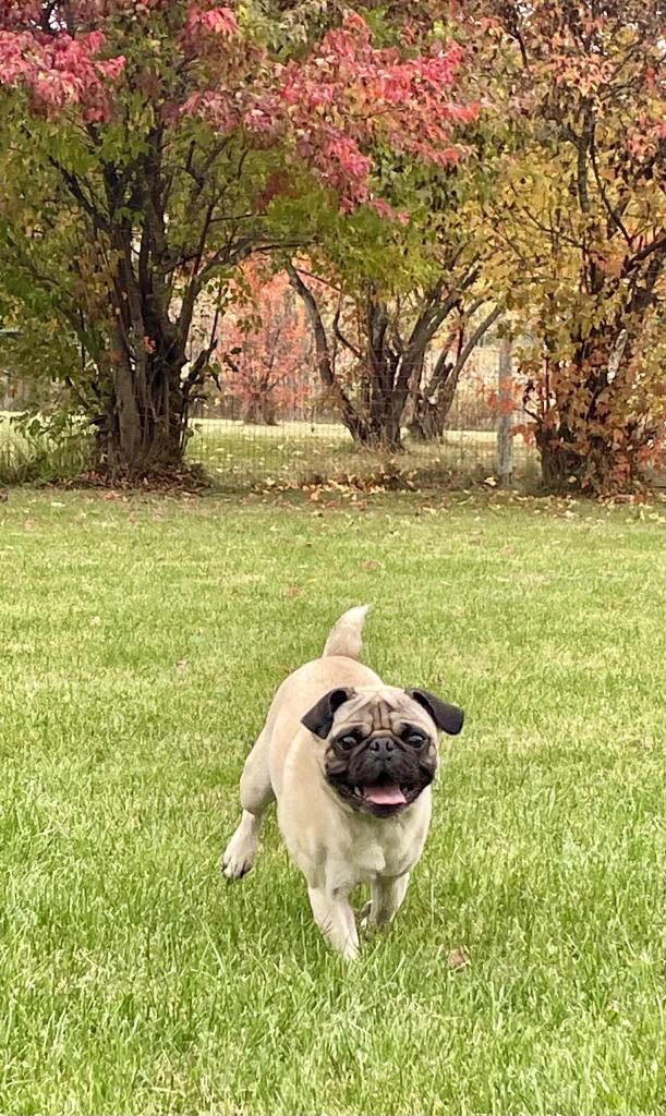 Bonjour, I’m Beck! The Pug with Pipes, Personality, and Plenty of Love to GiveSalut! I’m Beck — originally from Quebec, so I might speak French… but my foster family speaks English and German, so honestly, I just answer to the language that comes with treats.I’m about 18 pounds of pure pug energy and charm. Don’t let my small size fool you — I can run. I once had a 30-minute race with a whippet and kept up the whole time. Pretty impressive, right? (I also sang the entire time. I’m what they call “vocally gifted.”)Speaking of singing — I don’t really bark… I perform. When I’m happy, sad, or see another dog, I express myself with a signature dramatic “scream.” My foster mom says it sounds like an opera solo, but I think of it as my way of spreading joy. Because of my big voice, I prefer quieter places. Busy streets and lots of strangers can be overwhelming — I like to stick to my calm country walks, where my audience is limited to squirrels.I’m a total people-and-pug lover. I want to be wherever my humans or fur siblings are — I call it “quality time.” My foster mom calls it “severe codependency.” Tomato, tomahto.At night, I sleep in my cozy crate (right beside the bed so I can hold hands, obviously). On weekends, I get promoted to the big bed for family snuggles — my favorite shift of the week.Now, a few important things about me:I’ve got a sensitive tummy, so I eat special food that works for me. I can’t have sudden diet changes or mystery treats — trust me, it’s better that way for everyone.I eat really fast (I just love food, okay?), so I use a slow-feeder bowl to help me pace myself.I recently had dental surgery, and now my foster mom says brushing my teeth is part of my self-care routine. So my forever family will need to keep up with that — I want to keep my smile movie-star bright!My bladder is small but mighty — I can hold it for about 6 hours, but after that, it’s “go time.” I need quick outdoor access, especially in the mornings.And yes… I have a habit of occasionally sampling my own poop (I know, I know — I’m working on it). So quick backyard cleanup is a must.Oh, and I prefer a private potty experience — I like to back up to a bush or tree. A gentleman has his rituals.I’d love a home with another friendly dog and humans who are around most of the time. I do best in quieter environments and would rather not be left alone all day. Older kids are fine — as long as they can handle my underfoot enthusiasm.In return, I promise endless love, laughter, and entertainment. I’ll make you laugh, cuddle you endlessly, and serenade you daily. I may have a few quirks, but hey — perfection is boring.So, if you’re looking for a loyal little sidekick with the heart of a lover, the lungs of an opera singer, and the spirit of a marathon runner… look no further. I’m Beck, and I’m ready for my encore — with you. *located in Utopia