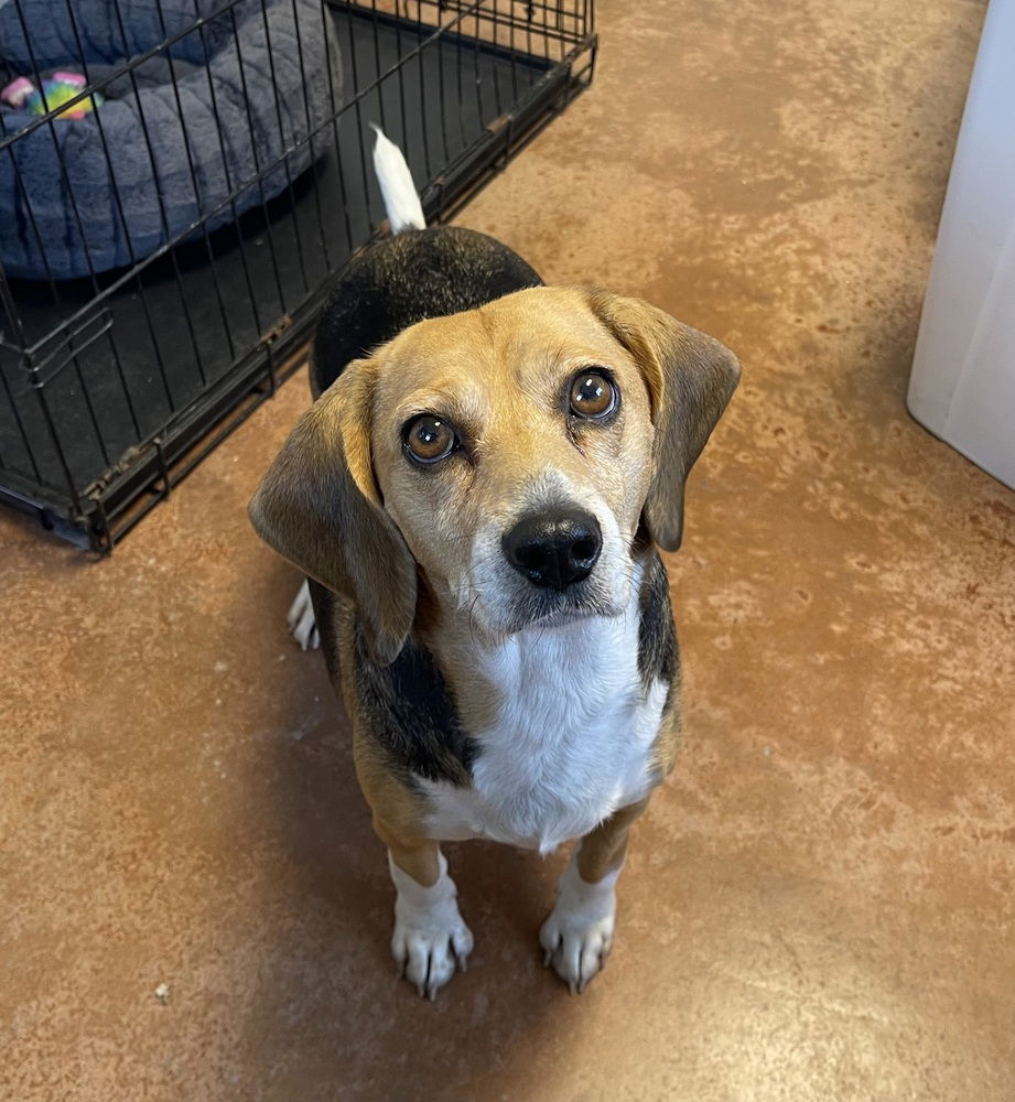 Meet BeeBee! This sweet 5 year old Beagle girl is the perfect mix of playful and mellow. BeeBee loves her daily walks where she can follow her nose on all kinds of adventures, but she's just as happy curling up beside you for a cozy nap. She's gentle, affectionate, and has that classic Beagle charm – soulful eyes, soft ears, and a heart full of love. She's ready to bring joy, laughter, and endless tail wags to her forever home! If you're interested in adopting me, fill out an adoption application online at www.polkcountyhumanesociety.org/adopt where you will also find a link to reserve me for an appointment. Some pets are in foster homes or may already have an appointment scheduled, so the appointment is important to make sure I will be available to meet you when you come.Polk County Humane Society is located in Bolivar, Missouri, but also makes transports to the Denver, CO, Des Moines, IA and St. Louis areas twice monthly. For potential adopters in those areas, we can do a virtual visit using FaceTime or another app. Just request an appointment using the same link, but note that you want the visit to be virtual. We will call you at the time of the visit once it is confirmed. For long distance transports to Colorado and Iowa, there is an additional $100 fee to cover the cost of the transport ($65) and a health certificate from a veterinarian ($35). For transports to St. Louis, the additional fee is $50 to help cover gas. Going that last mile home for our sweet pets!All of our pets are neutered or spayed, have vaccinations appropriate for their age, treated with flea/tick/heartworm prevention, dewormed and dogs are also microchipped. #adoptdontshop