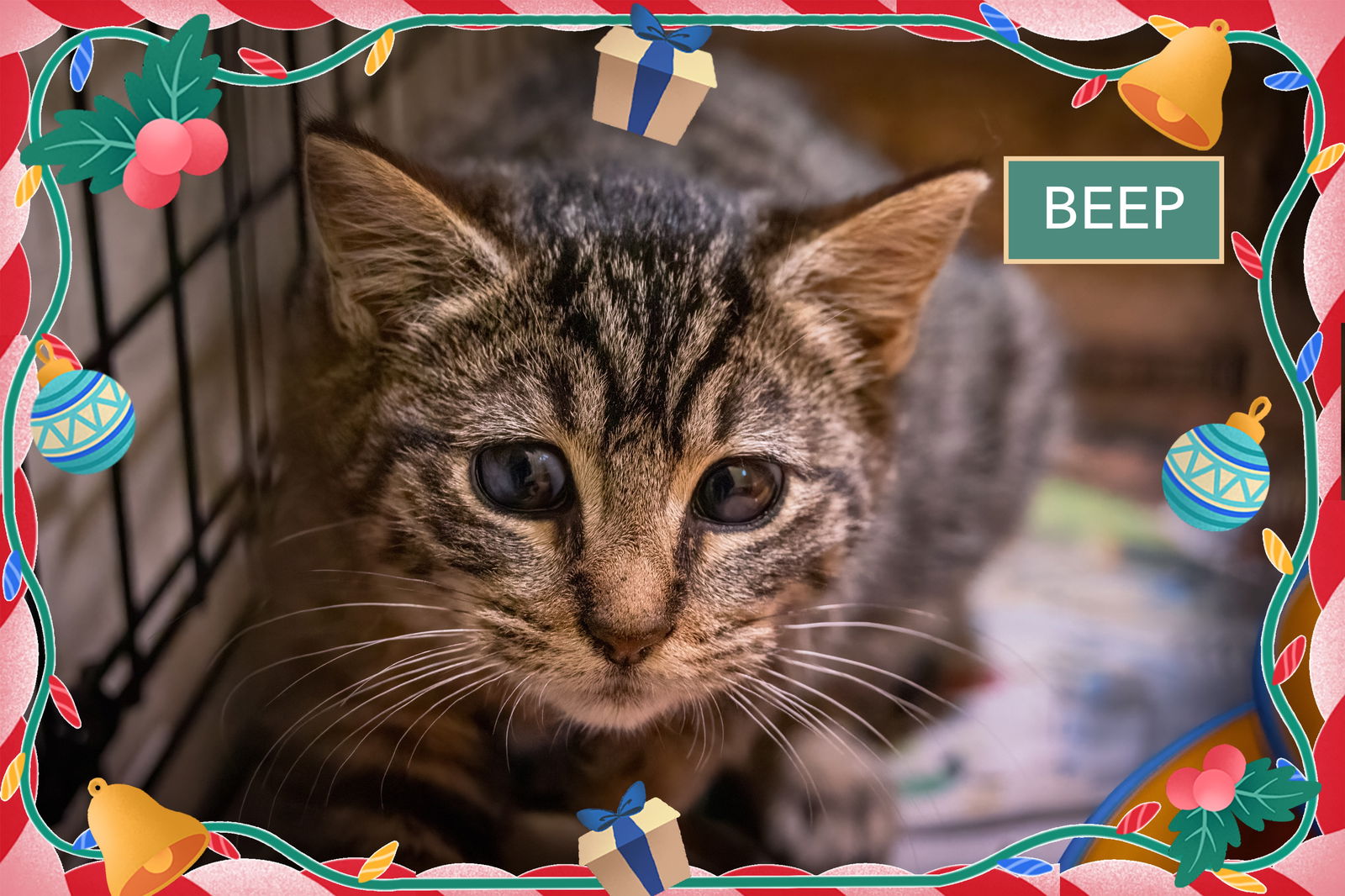 Foster Please!!! Please meet Beep! His corneas are scarred. He and his sister Lolly are almost 3 months old as of 12/14/2025. Beep is playing with their foster family. Lolly is playing in our West Chester PetSmart adoption center. Beep is scheduled to join her Jan. 10 or 11. Please submit our no-obligation Adoption Application for a meet and greet or to adopt: https://forgottencats.org/adoption-application/. Thank you! (Foster: Megan F.)