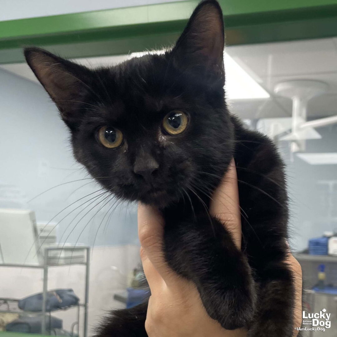 Please contact Lauren McCarty (laurenmc@luckydoganimalrescue.org) for more information about this pet.Beetle Juice, Beetle Juice, Beetle JuiceBEETLE JUICE NEEDS A FOREVER HOME! Name: Beetle Juice Best Guess for Breed: Domestic Short Hair Age: 4.5 months (Estimated DOB: 7/18/24) SEX: male Approximate Weight: 4.8 lbs Coloring: Black Type of Hair: Short Gets Along With: Because of his young age, Beetle Juice will likely get along with other cats, dogs and kids with an acclimation period. We’re happy to help with tips and tricks! Currently Living at: PetSmart Largo (10464 Campus Way South Largo, MD 20774) Come say hello to me during the store’s operating hours! I am located in the Petsmart Adoptions center area at the front of the store! If you want to play with me or adopt me, you will need to complete the adoption process through Lucky Dog Animal Rescue. I am Looking For: My loving forever family! Hi! I’m Beetle Juice, and I am a cute little kitten! I won’t ask for much- just some love, cuddles and lots of toys so I can run and play and be my kitten self. What My Foster Says About Me: coming soon! Kitten Vetting Requirements: Your kitten may not be fully vaccinated upon adoption. You will be responsible for providing whatever remaining vaccines are needed to complete the kitten vaccine series. TO ADOPT: The adoption fee for adult cats is $200 ($350 for two cats adopted together). The adoption fee for a kitten (under 7 months old) is $220 ($380 for two kittens adopted together).If you are interested in adopting, please complete the Adoption Questionnaire online at bit.ly/adoptaluckycat. Lucky Dog Animal Rescue does our best to provide accurate information about the cats we have for adoption. That said, we cannot make any guarantees about age, breed or temperament. Thank you for contacting Lucky Dog Animal Rescue and helping to save a life! Please visit us online at www.luckydoganimalrescue.org . BE A FOSTER!!! Fosters make it possible for Lucky Dog Animal Rescue to save and care for homeless and abandoned dogs! To learn about fostering, please contact fostering@luckydoganimalrescue.org BE A SPONSOR!!!! Sponsors help Lucky Dog support the many dogs we save. To learn more about sponsorship, please contact info@luckydoganimalrescue.org !