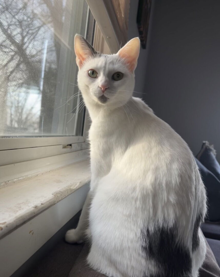 Meet Bell, the sweet 1 year old girl that wants to be by your side, all the time. Bell would do great in a household with somebody that is retired, or works from home, as she likes to follow a human around and be involved in their lives. Although she doesn’t love being picked up, she likes sitting on your lap and cuddling, but also loves to play with toys. She appreciates other animals to keep her busy and has been raised with 2 other cats and a dog. She is an avid bird watcher and is often lounging by windows. She became her strong-willed kitty self over the past few months and is ready to make someone a very happy cat owner. Bell is playing with her foster family. Please submit a no-obligation application for a meet and greet or to adopt today: https://forgottencats.org/adoption-application/. Thank you! (Foster: Sandy D.).